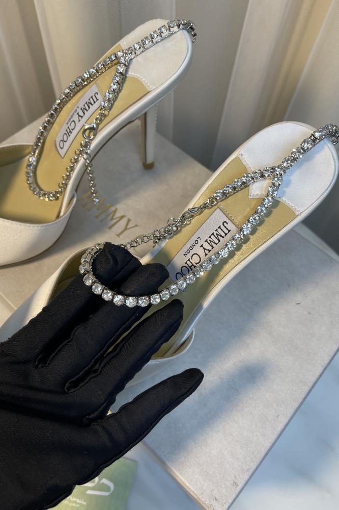 إذا كنتِ تبحثين عن قطعة تخطف الأنظار من اللحظة الأولى، فإن حذاء سايدا الأبيض من جيمي تشو هو خيارك المثالي. تصميمه الفاخر وكعبه العالي المرصع بالكريستال يمنحك حضورًا لا يُنسى في كل مناسبة. هذا الحذاء ليس مجرد إكسسوار بل هو بيان أناقة يليق بذوق المرأة السعودية التي تعرف كيف تختار ما يميزها.