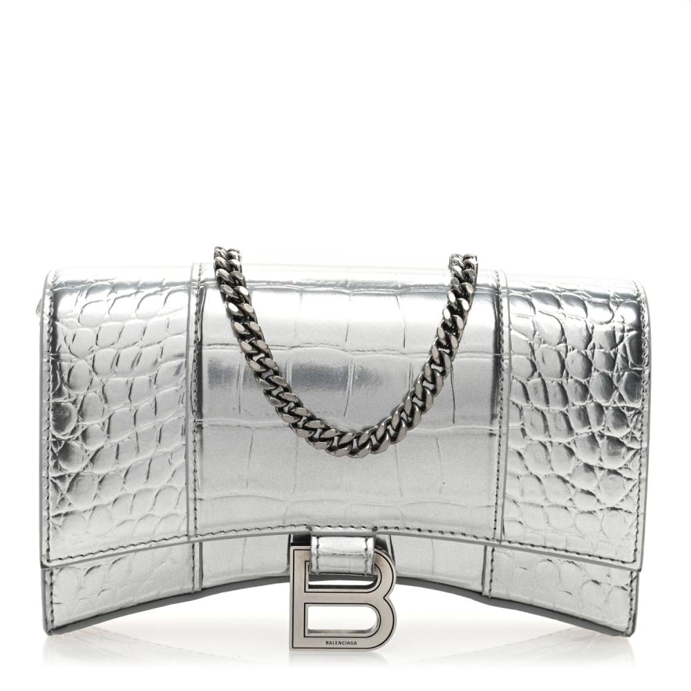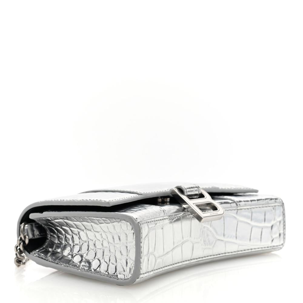 شنطة بالنسياقا نقش جلد التمساح 19 سم بسلسلة فضية – الفخامة العصرية بلمسة استثنائية