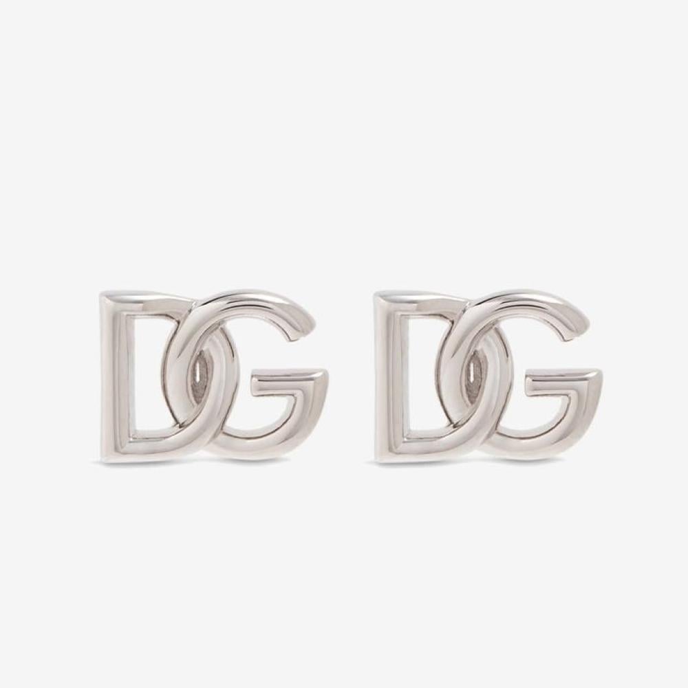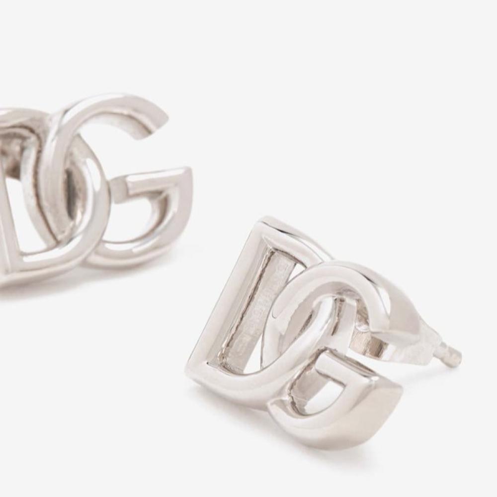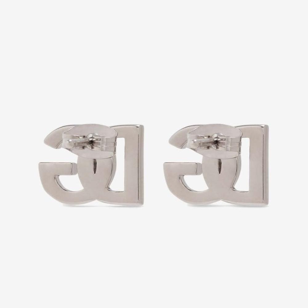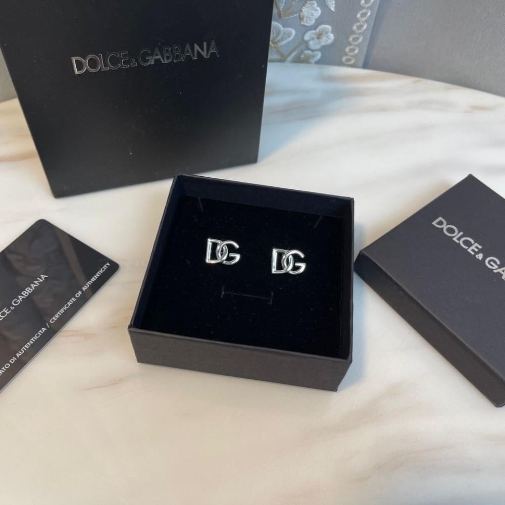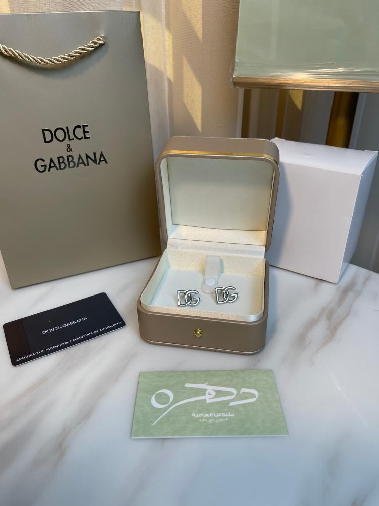 - اقراط فضية تحمل شعار Dolce & Gabbana