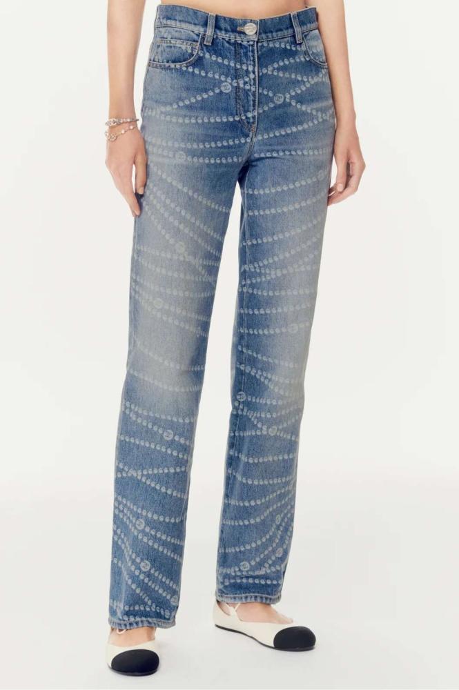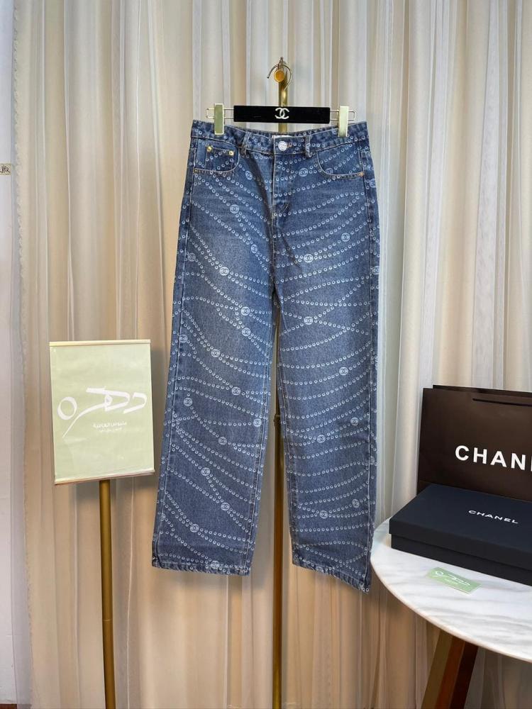 بنطال جينز كاجوال أزرق بشعار شانيل مزين بنقش الترتر
