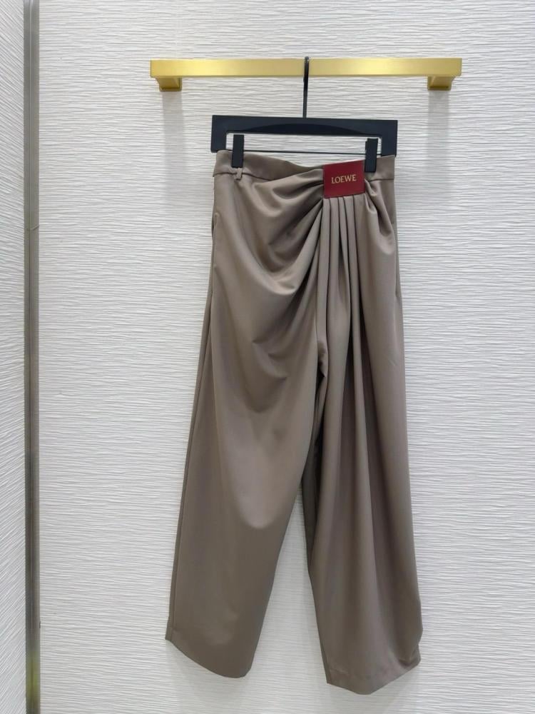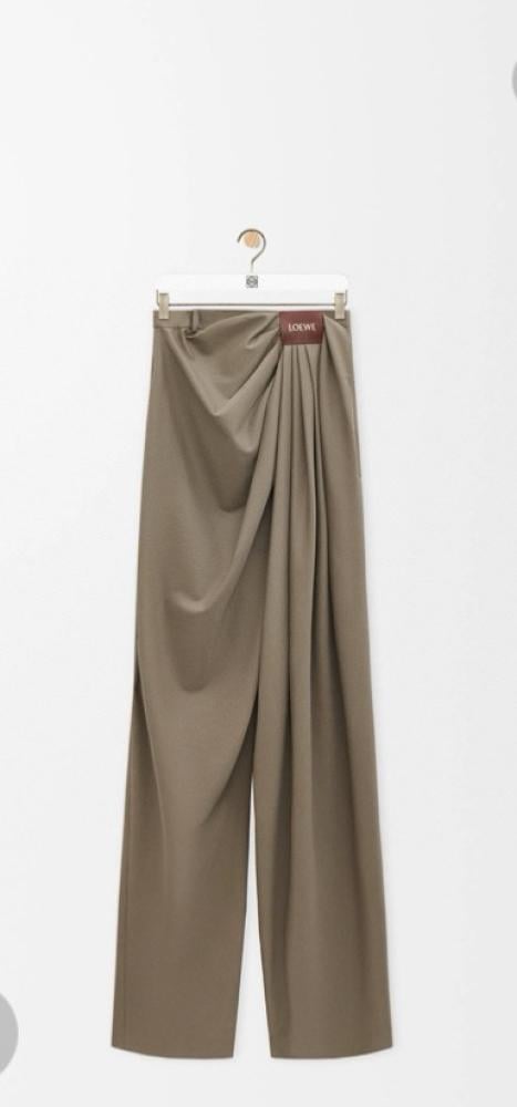 التفاصيل الدقيقة مثل الثنيات غير المتماثلة والرقعة الجلدية المنقوشة بشعار LOEWE تضيف لمسة من الفخامة والتميز.