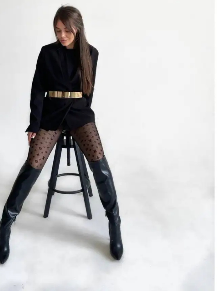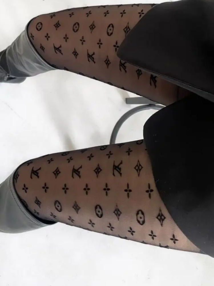 أضيفي لمسة من الأناقة الفاخرة إلى خزانة ملابسك مع جوارب نسائية أنيقة بنقشة لويس فيتون باللون الأسود. احصلي عليها الآن واجعلي كل إطلالة لا تُنسى!