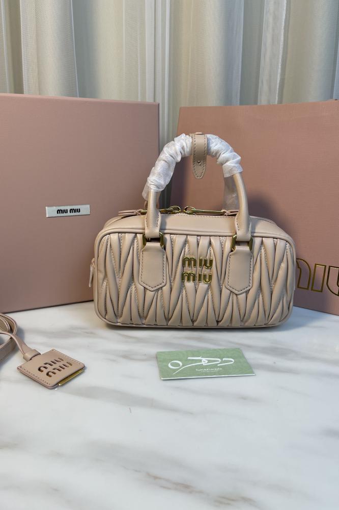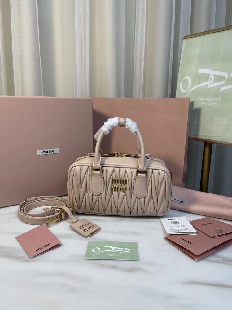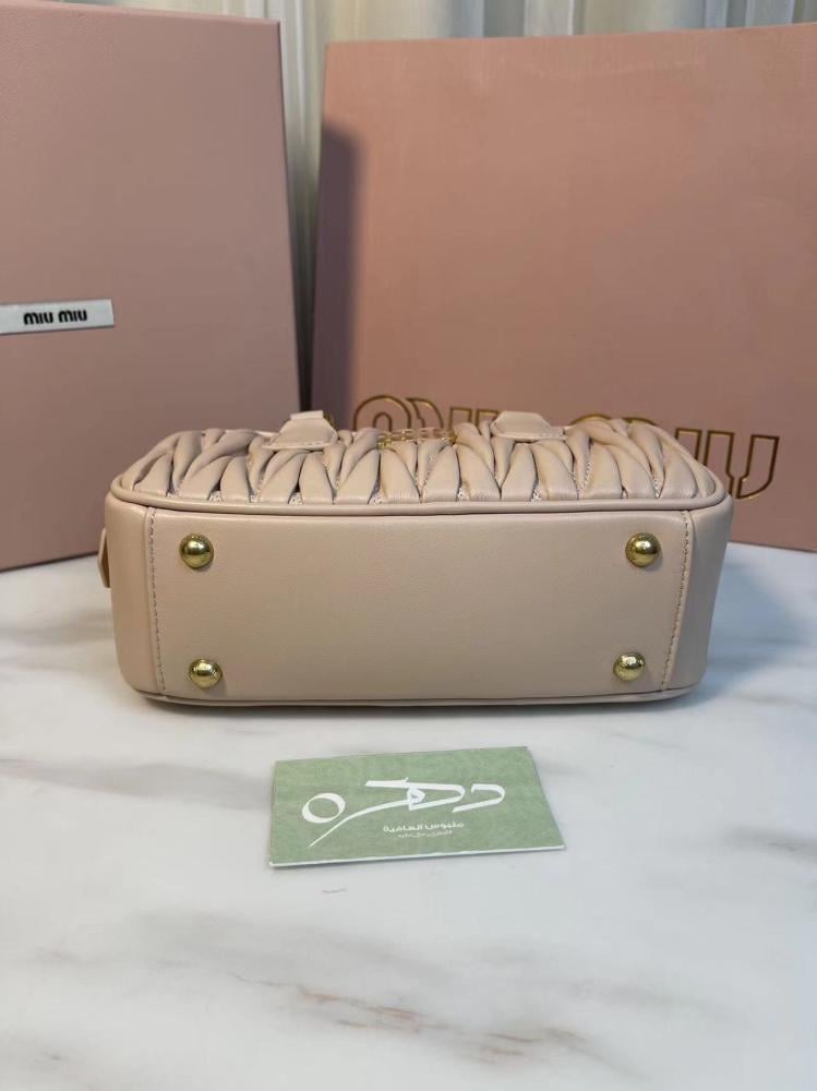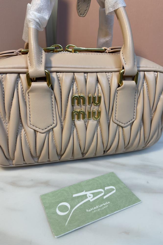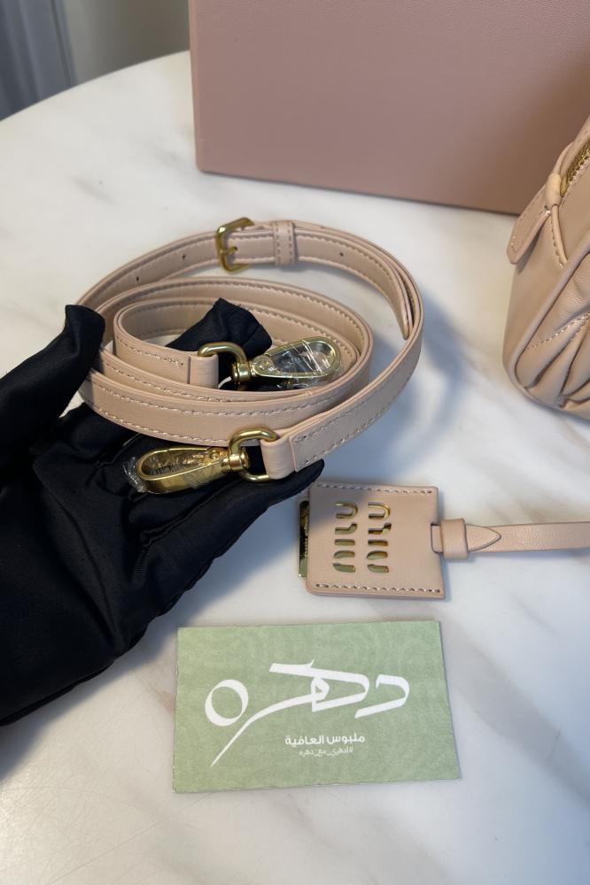 تُعيد حقيبة أركادي ماتيلاسيه تعريف الأناقة اليومية من خلال خطوطها الانسيابية وتفاصيلها الدقيقة. تقنية الماتيلاسيه المميزة تمنح الجلد ملمسًا غنيًا ومظهرًا ديناميكيًا، بينما يبرز شعار ميو ميو المعدني على الجهة الأمامية كختم فني يعبّر عن هوية الدار. بفضل الحزام القابل للتعديل والمقبض العلوي، يمكنكِ تنسيقها بسهولة مع إطلالاتكِ النهارية أو المسائية.