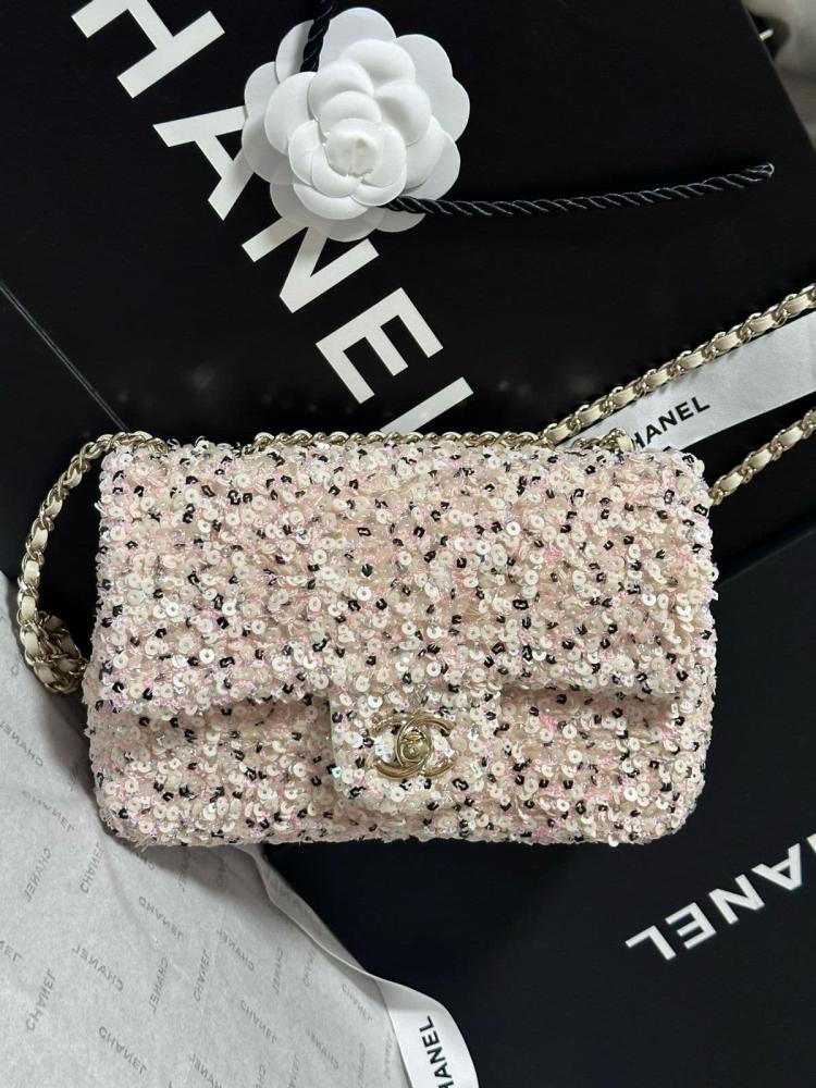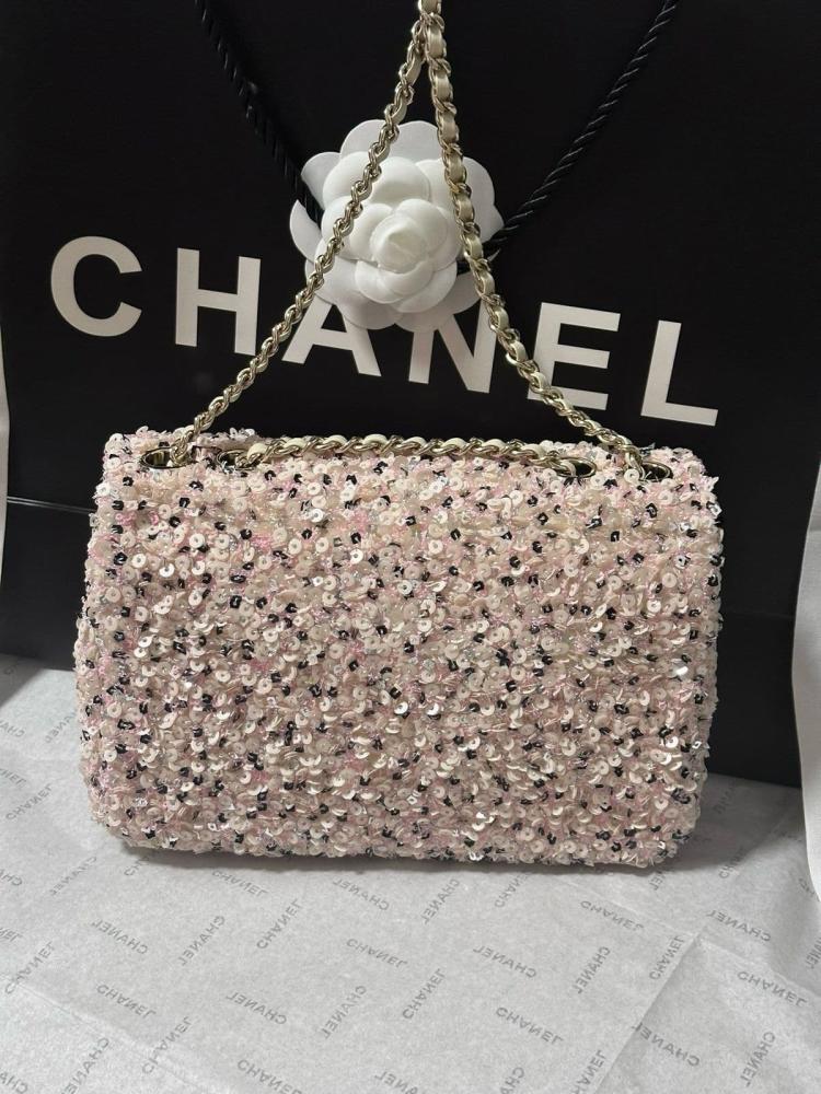 اجعلي حقيبة شانيل فلاب المرصعة بالترتر جزءًا من مجموعتك، وكوني محط الأنظار في كل مناسبة بإطلالة تنبض بالسحر والجاذبية!