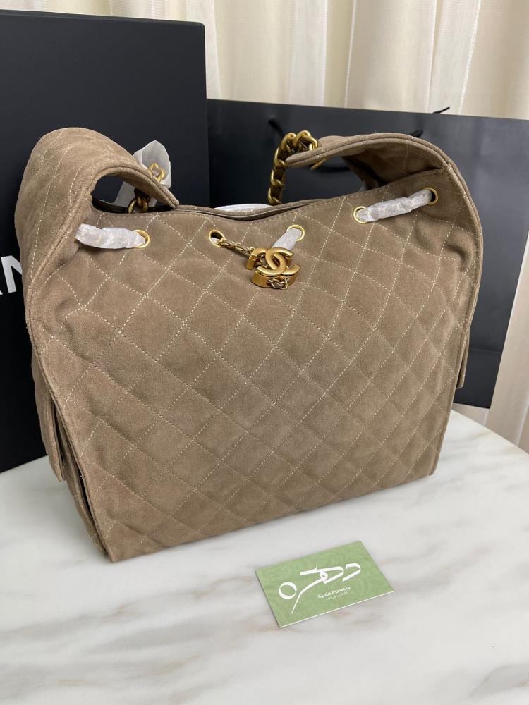 امنحي إطلالتك لمسة من الفخامة والرقي مع حقيبة شانيل هوبو البنية الفاتحة، حيث يلتقي التصميم العصري بالتفاصيل الكلاسيكية ليخلق قطعة استثنائية تعكس الذوق الرفيع.