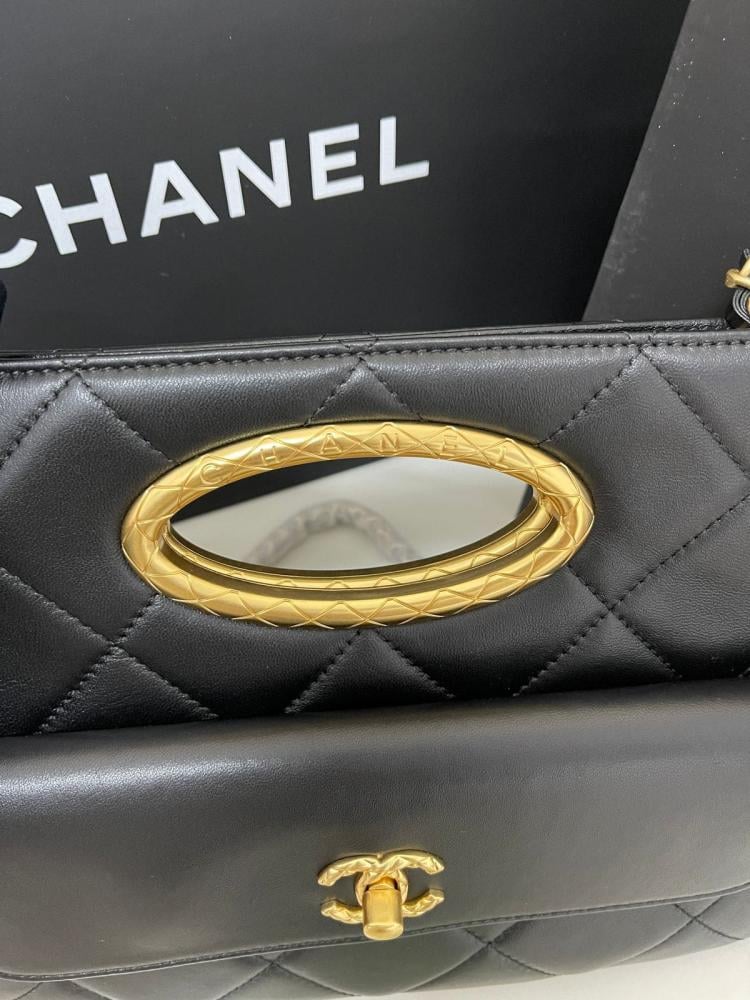 • تصميم عصري فاخر تجمع بين لمسات شانيل الكلاسيكية والحداثة الأنيقة، مع تفاصيل ذهبية مميزة تضيف لمسة من الرقي.