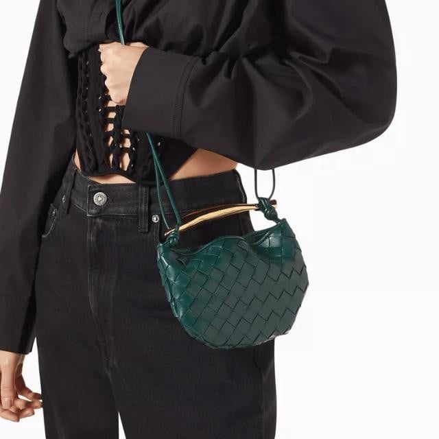 استقبلي فصل الأناقة مع حقيبة ساردين متوسطة من بوتيغا فينيتا، حيث يتجسد الإبداع الحرفي في كل خيط مجدول. بلونها الاخضر الزمردي العميق، تعد هذه الحقيبة تحفة فنية تضفي على إطلالتك لمسة من الدفء والفخامة.