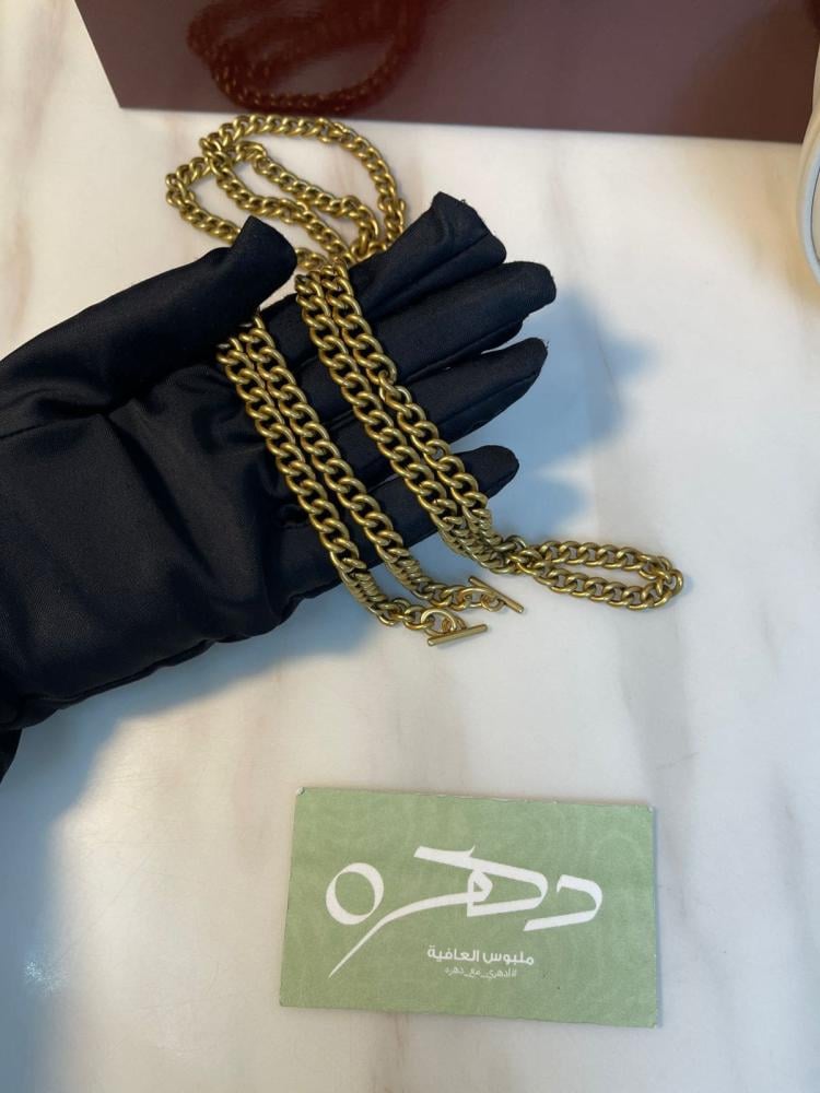 - طول الحزام: حزام جلدي متصل بسلسلة ذهبية عتيقة يمكن ارتداؤه على الكتف أو كحقيبة كروس.