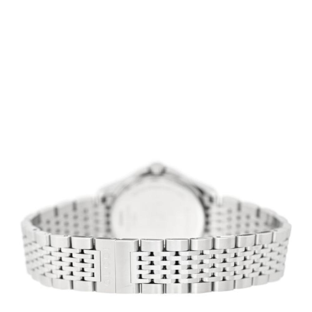 ساعة G-Timeless من قوتشي ليست مجرد إكسسوار، بل هي تحفة فنية تنبض بالدقة والجمال. تصميمها يجمع بين الفولاذ المقاوم للصدأ وبريق عرق اللؤلؤ الأسود، لتمنحك حضوراً راقياً في كل مناسبة. علامات الساعة المرصعة بالألماس تضيف لمسة من الفخامة الهادئة التي تليق بذوقك.