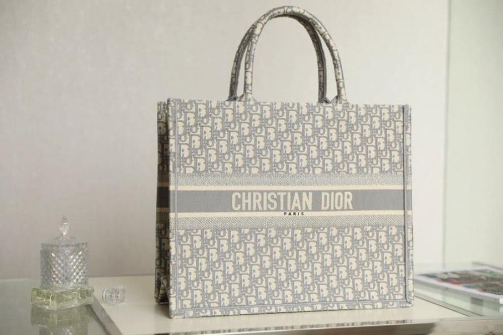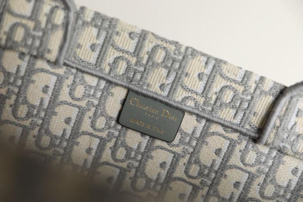 شنطة ديور بوك توت 41 سم - رمادي وبيج لوقو