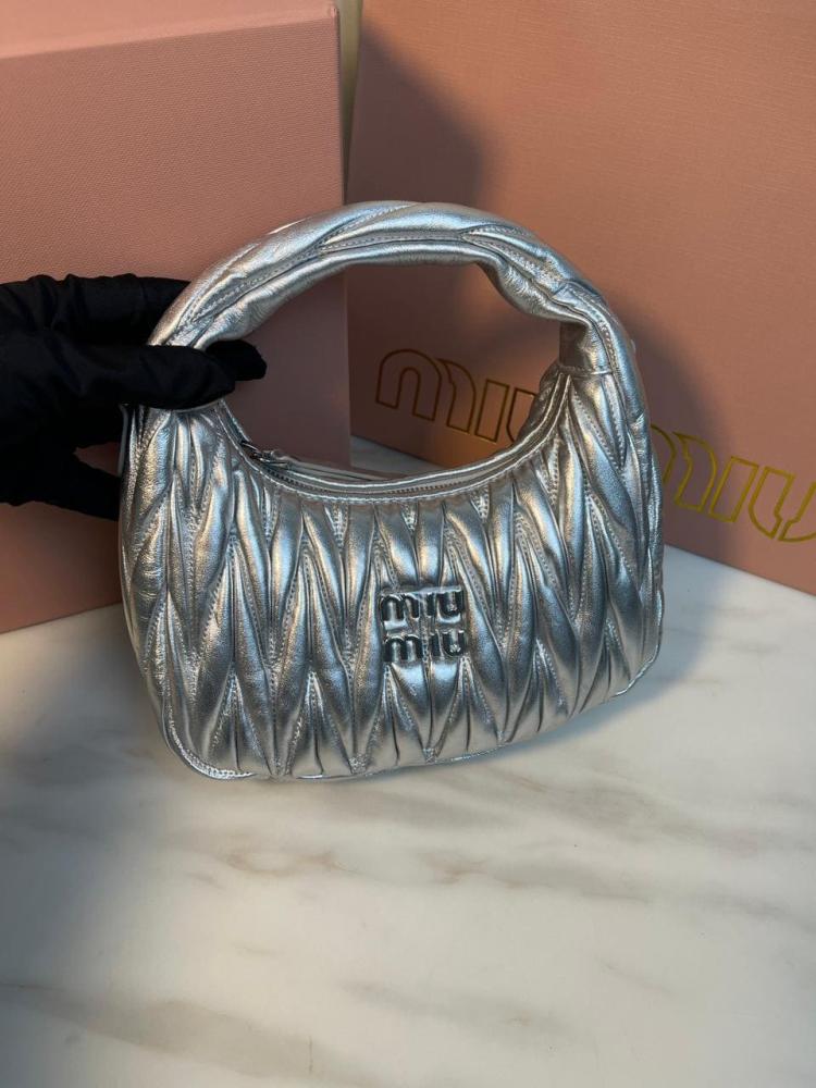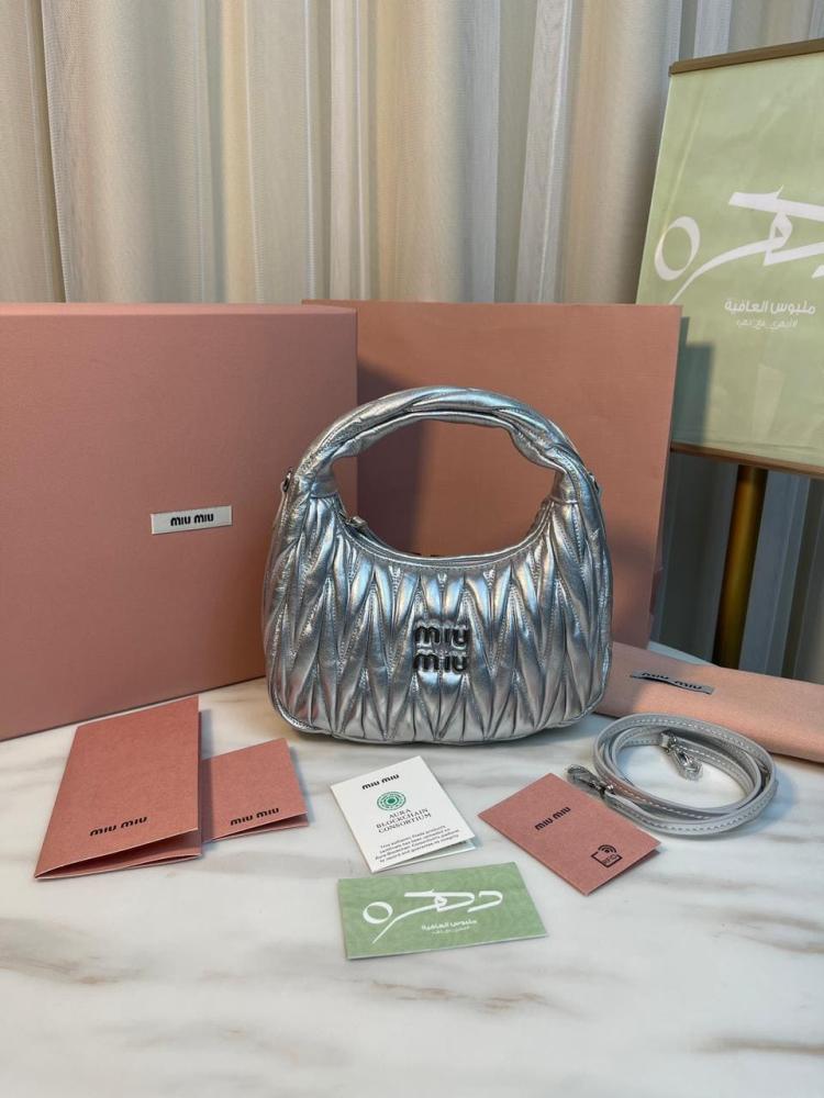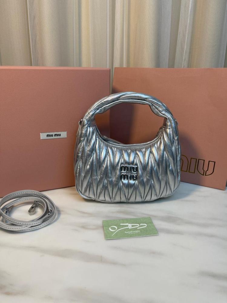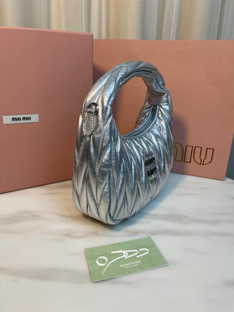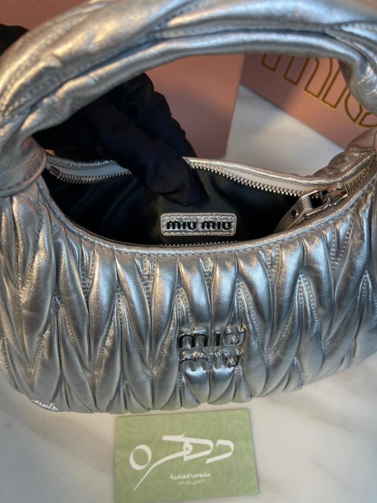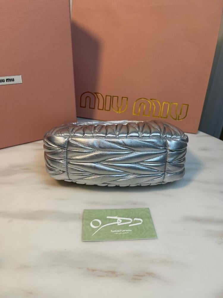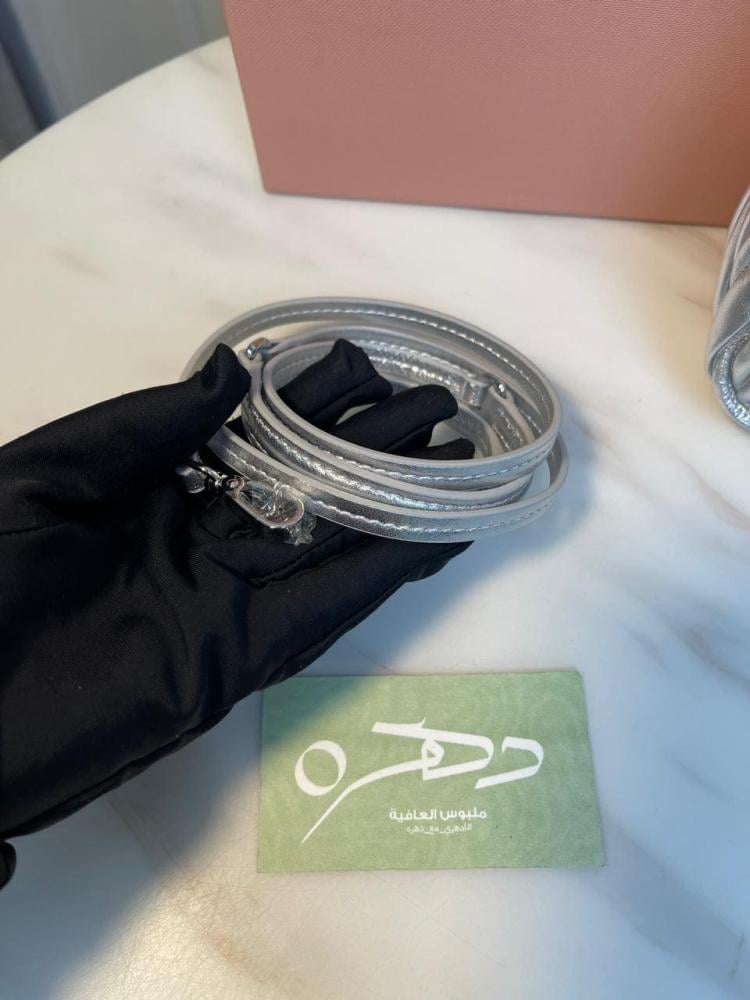 أبهري الجميع بأناقتك مع شنطة يد وكتف ميو ميو واندر ماتلاسيه ميني - فضي، حيث تلتقي الفخامة بالأناقة في قطعة واحدة مذهلة!