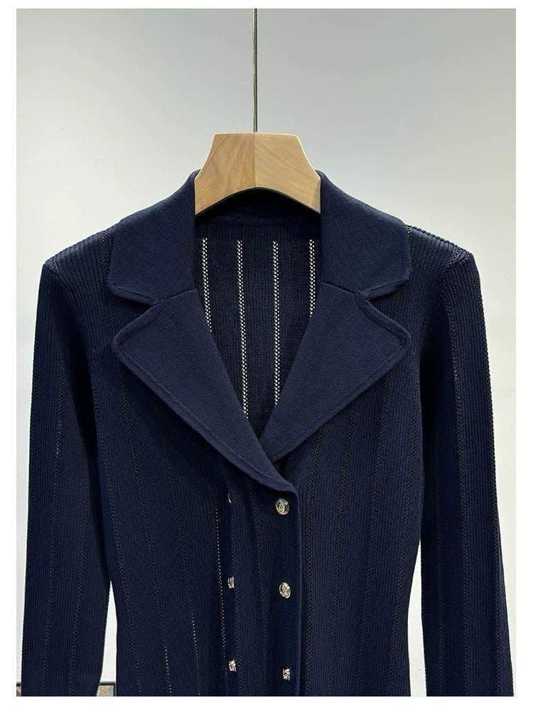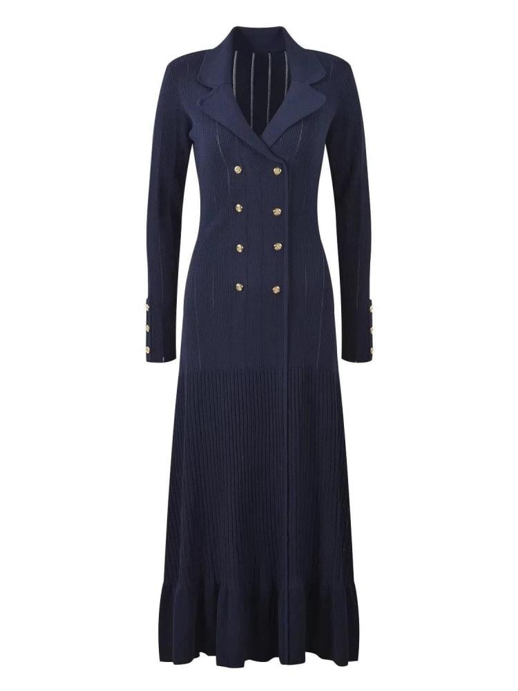 - الموديل: فستان ماكسي محبوك بأزرار أمامية مزدوجة