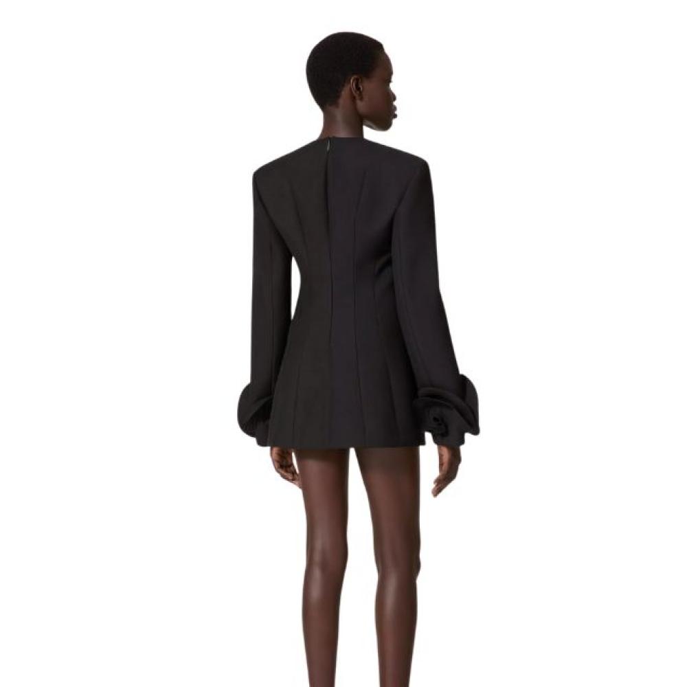 اطلبي الآن وتألقي بفستان قصير من قماش دريل مزدوج مضغوط من فالنتينو امنحي نفسك أو من تحبين هدية تليق بذوقك الرفيع وتضفي لمسة من الأناقة على يومك. اطلبِ الآن واجعلي لحظاتك تتألق بجمال الفستان الفاخر.