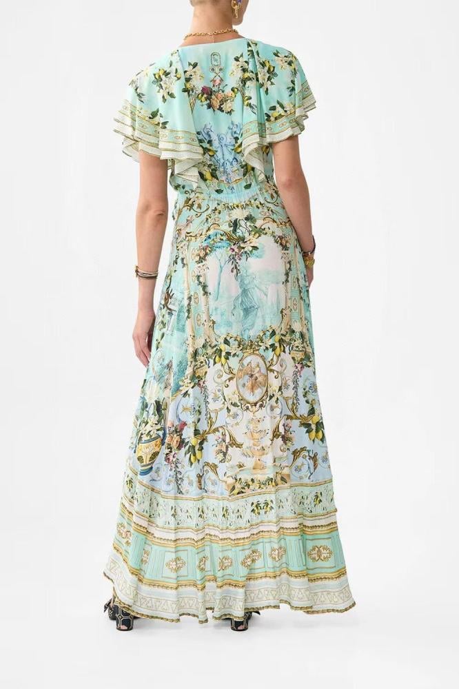 استمتعي بإطلالة ساحرة تأسر الأنظار مع فستان كاميلا الطويل بأكمام متموجة Camilla Frill Sleeve Long Dress – Venus On A Vespa. هذا الفستان يجمع بين التصميم الأنثوي الراقي والتفاصيل الفنية الفريدة، ليمنحكِ حضورًا لا يُنسى في كل مناسبة.