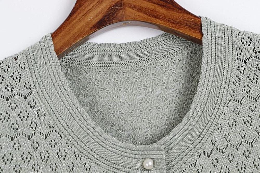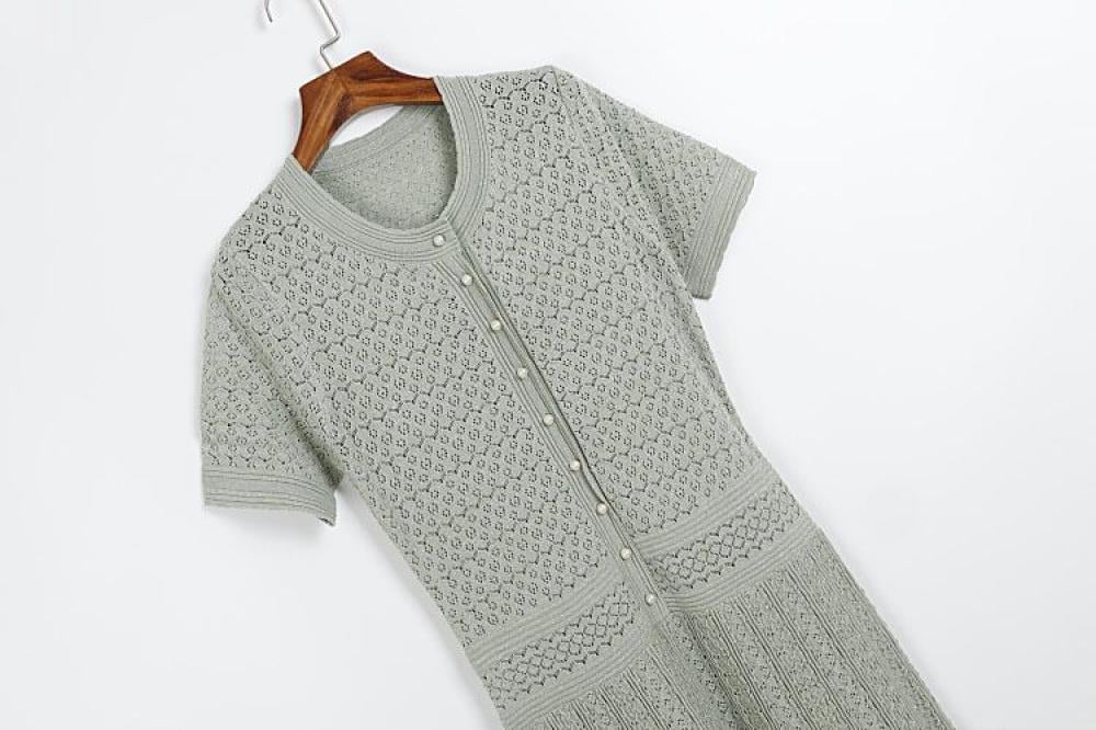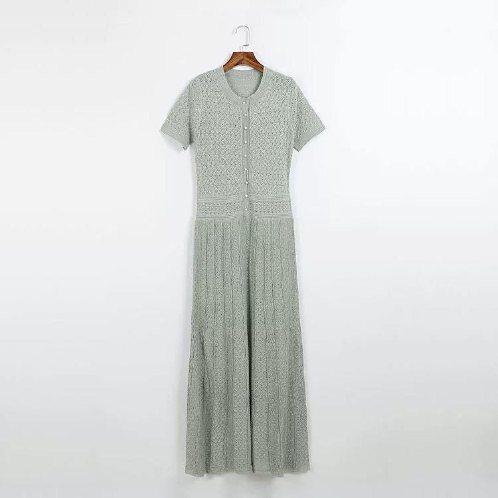 مميزات التصميم لـ فستان ماكسي محبوك بأزرار لؤلؤية من ساندرو: