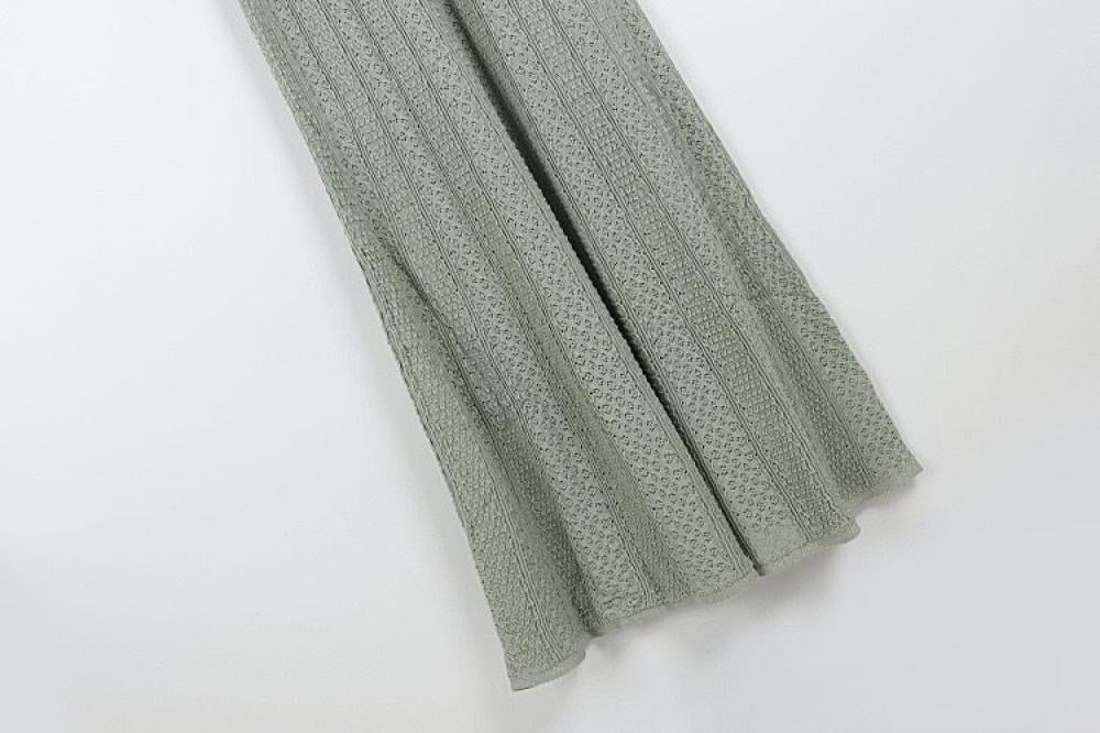 - خامة محبوكة لامعة تضيف عمقًا بصريًا وتمنح الفستان ملمسًا فاخرًا.