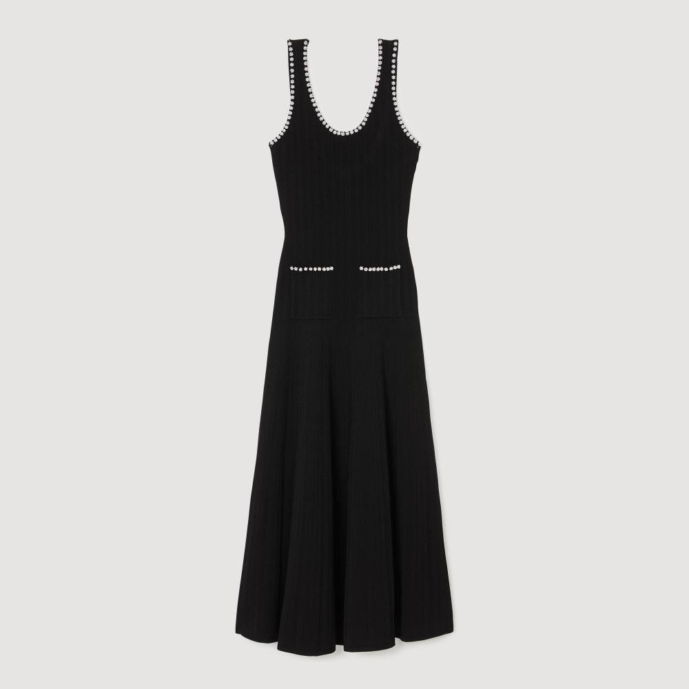 مميزات التصميم لـ فستان ماكسي مزين بالخرز محبوك من ساندرو: