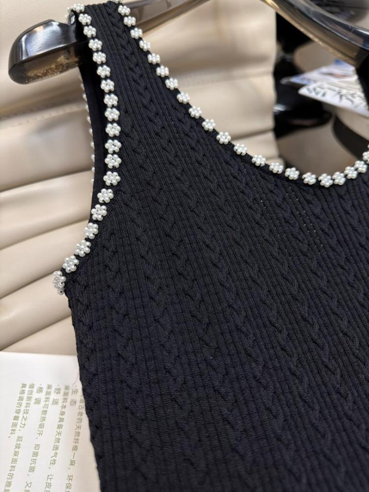 - تطريز خرزي متباين يضفي لمسة فنية على الفستان دون أن يطغى على بساطته.