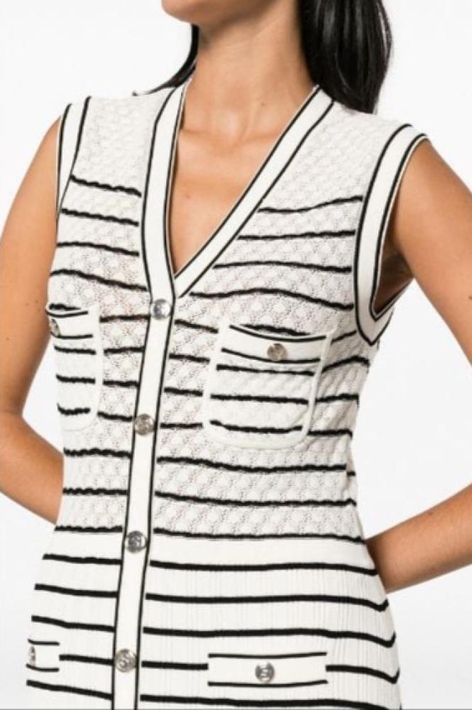فستان ميدي مخطط بالأبيض والأسود من ساندرو أناقة كلاسيكية عصرية