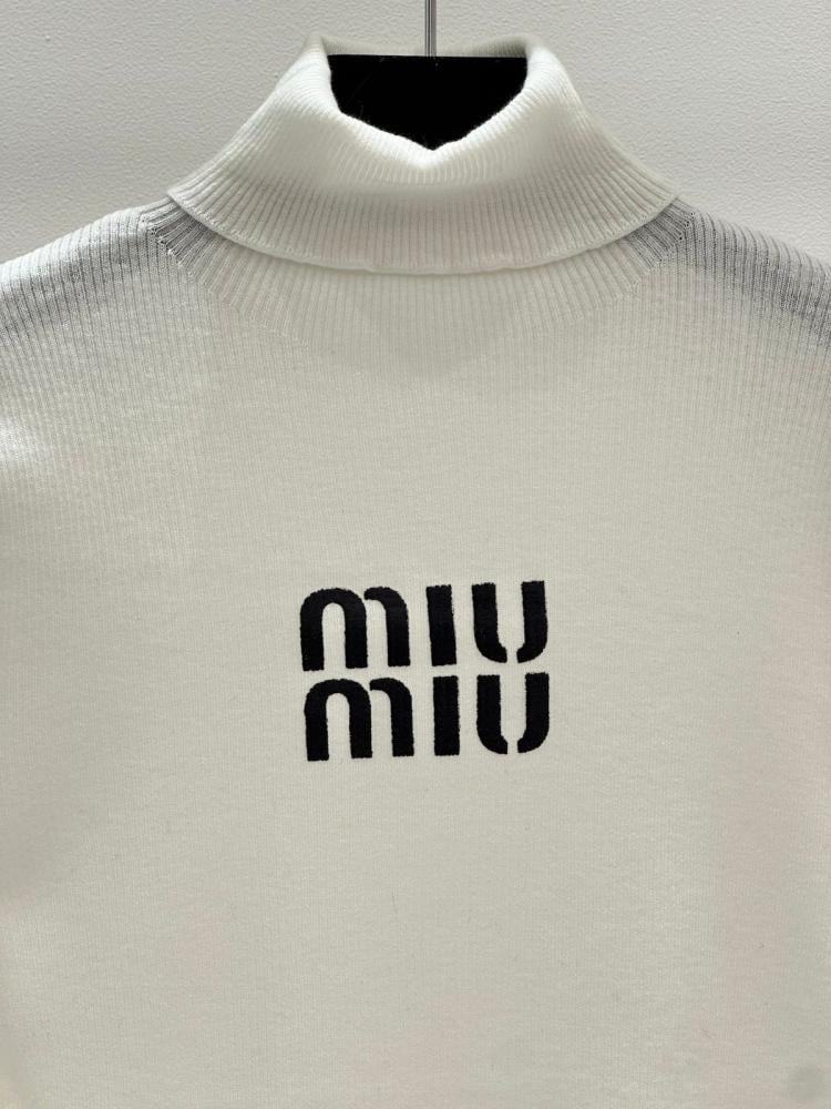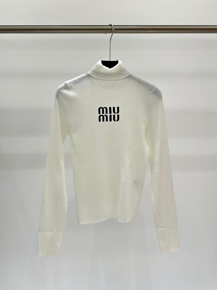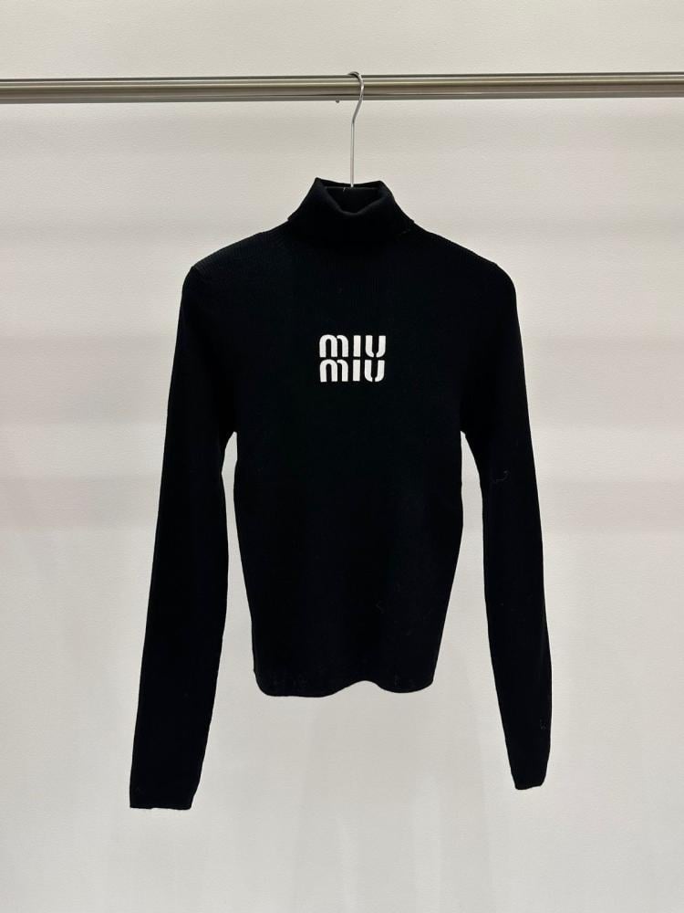 بلوزة شتوية من الصوف مع شعار الماركة من ميو ميو