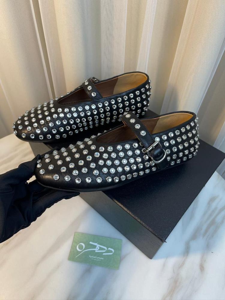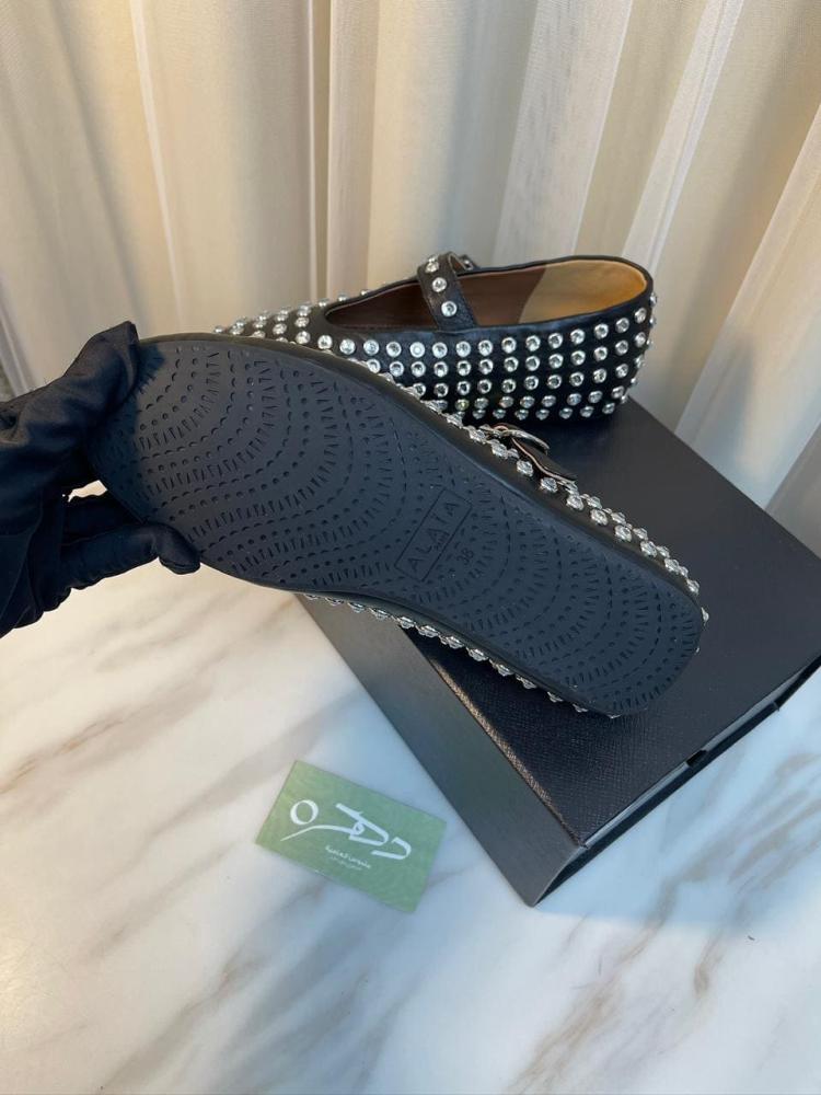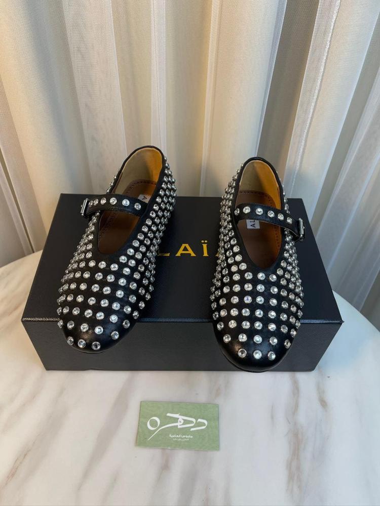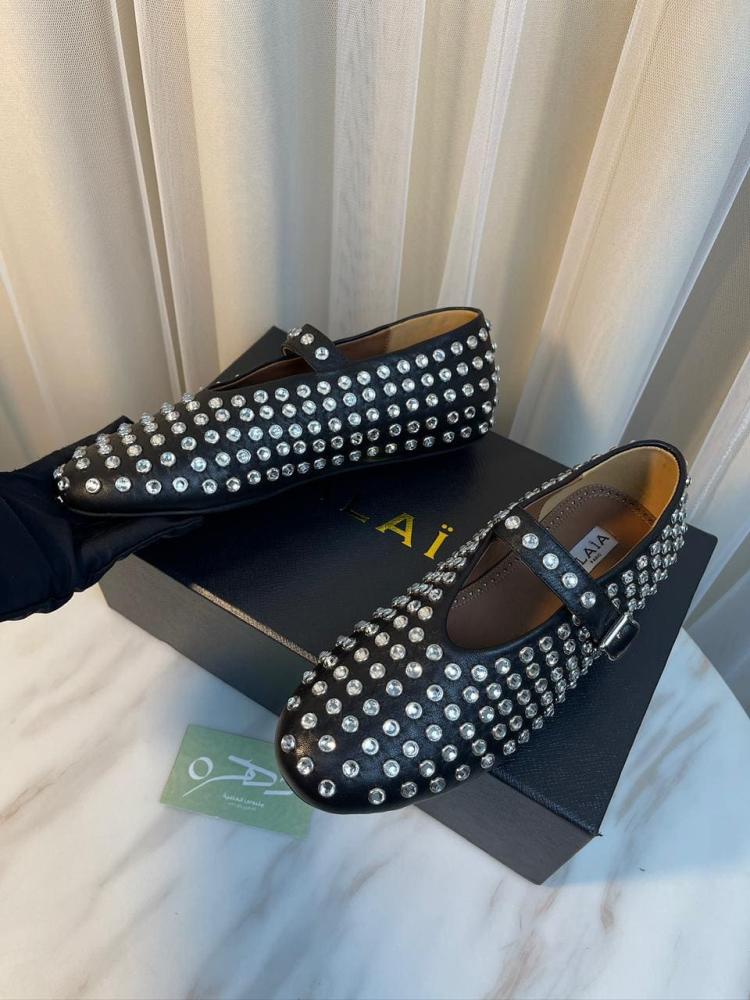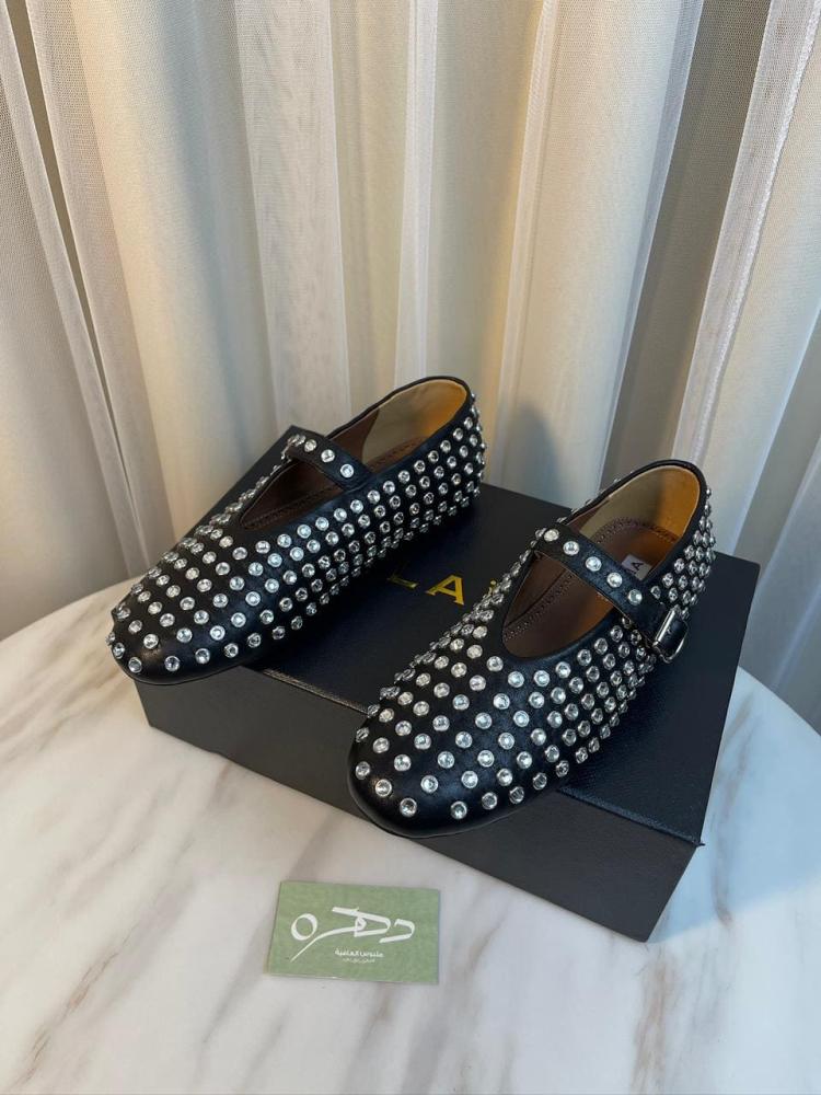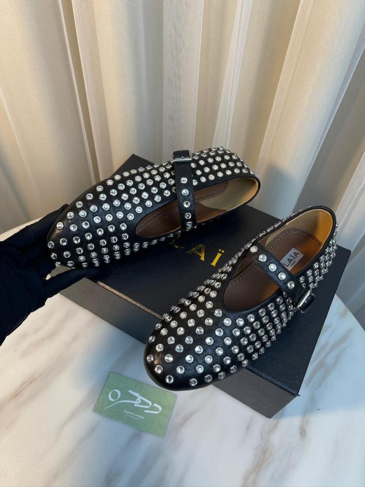 استقبلي الأناقة بكل خطوة مع تحفة فنية من توقيع دار Alaïa. حذاء الباليه المرصّع بالكريستال هو أكثر من مجرد إكسسوار، بل هو بيان واضح عن ذوقكِ الراقي وشخصيتك المتميزة. صُمم ليجمع بين الراحة الفائقة والبريق الأخاذ، ليكون القطعة المثالية لكل سيدة تعشق التميز.