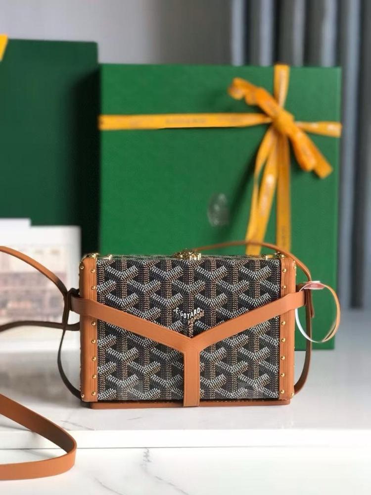 - رمز للأناقة الباريسية: نقشة Goyard الشهيرة تمنح الحقيبة هوية مميزة لا تخطئها العين.
