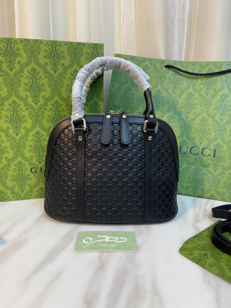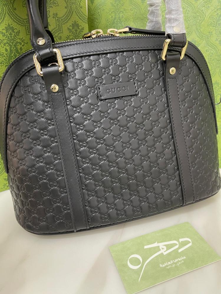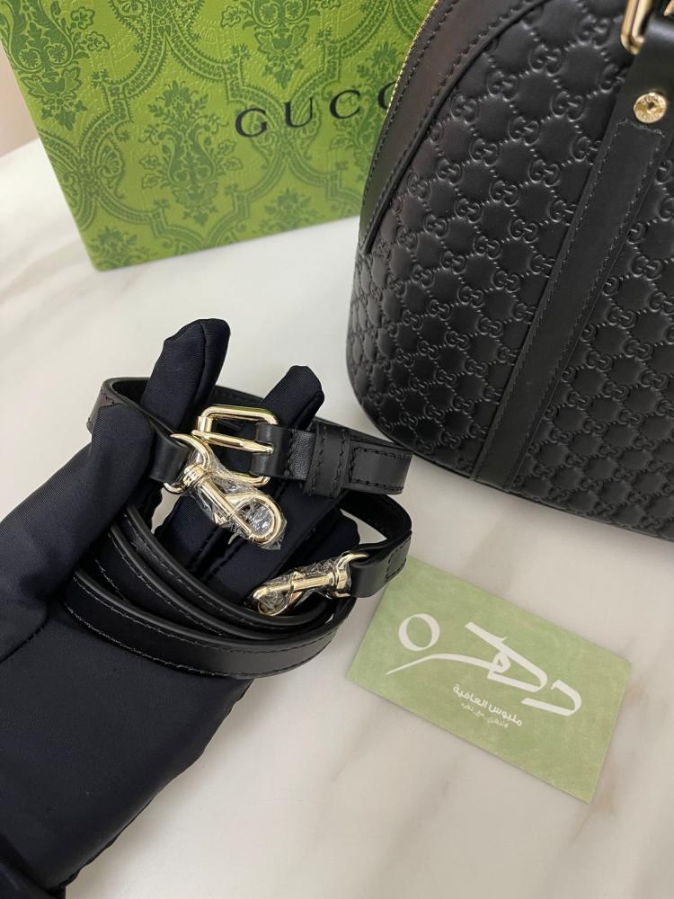 تميزي بإطلالتك مع حقيبة ساتشل غوتشي ميني دوم الجلدية السوداء. اطلبها الآن واهديها لصديقاتك أو معارفك لتضيفي لمسة من الفخامة والرقي إلى حياتهم وحياتك. اطلبي الآن من متجر دهره وكوني الأكثر تميزًا!