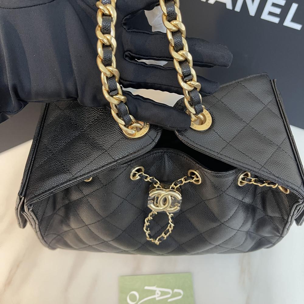 • تتميز الحقيبة بتصميمها الأنيق والمميز الذي يعكس روح شانيل الكلاسيكية مع لمسة عصرية.