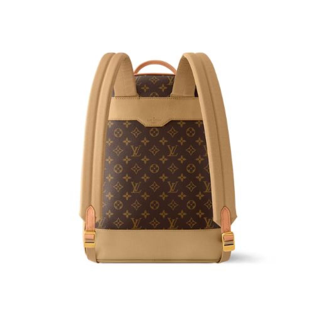 حقيبة الظهر الخارجية من لويس فيتون تأتي بمزيج فاخر من الجلد البيج المحبب، جلد الغزال المنقوش، وقماش المونوغرام الأيقوني.