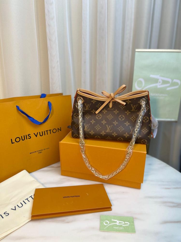 تصميم يُجسّد الفخامة الفرنسية بلمسة عصرية لكل امرأة سعودية تعشق التفاصيل الراقية. إذا كنتِ تبحثين عن حقيبة تجمع بين الأناقة العملية والهوية البصرية الفاخرة، فإن حقيبة Carryall BB هي خياركِ المثالي. مستوحاة من إصدار Louis Vuitton الأيقوني، تأتي هذه الحقيبة بتصميم مونوغرام كلاسيكي مزين بسلسلة ذهبية وأزهار ناعمة، لتمنحكِ حضورًا متوازنًا بين الرقي والجرأة.