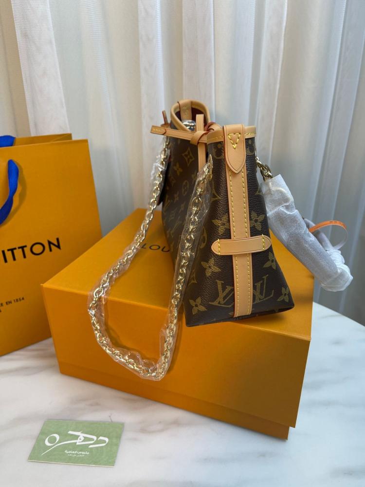 - قماش مونوغرام فاخر يعكس هوية لويس فيتون ويمنح الحقيبة طابعًا كلاسيكيًا متجددًا.