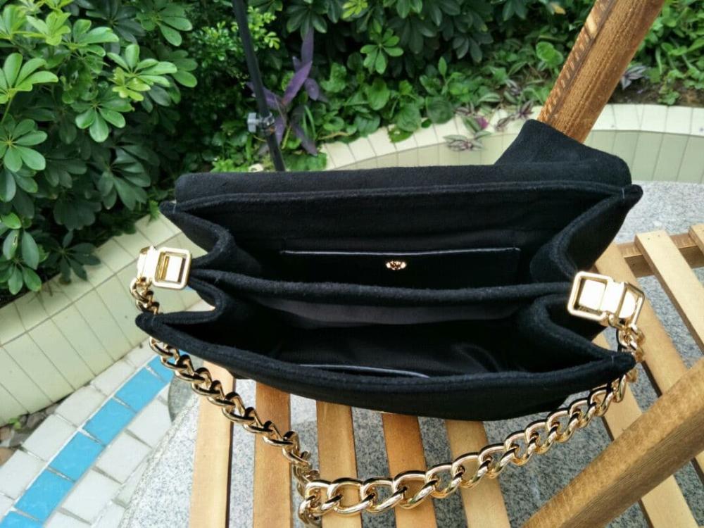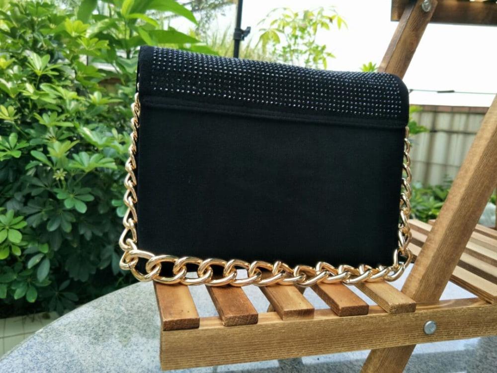 - الحمالة: سلسلة مطلية باللون الذهبي أنيقة لحمل الحقيبة على الكتف براحة.
