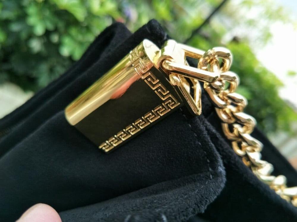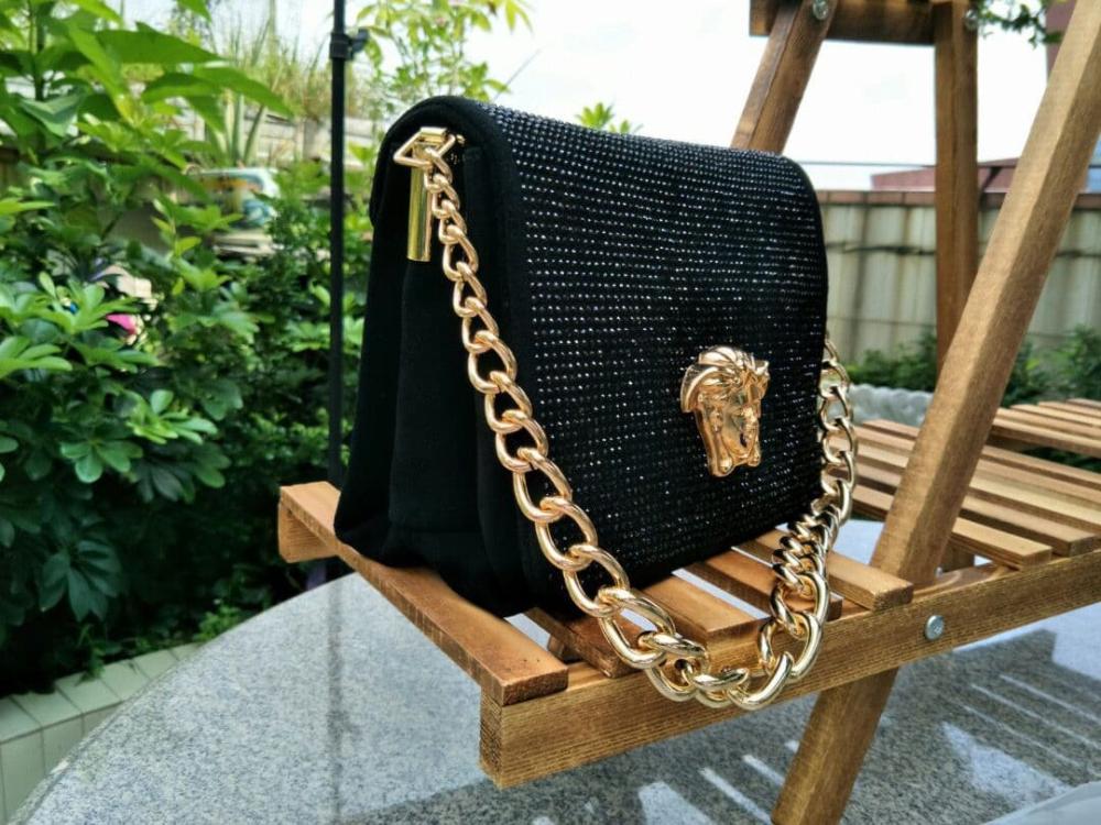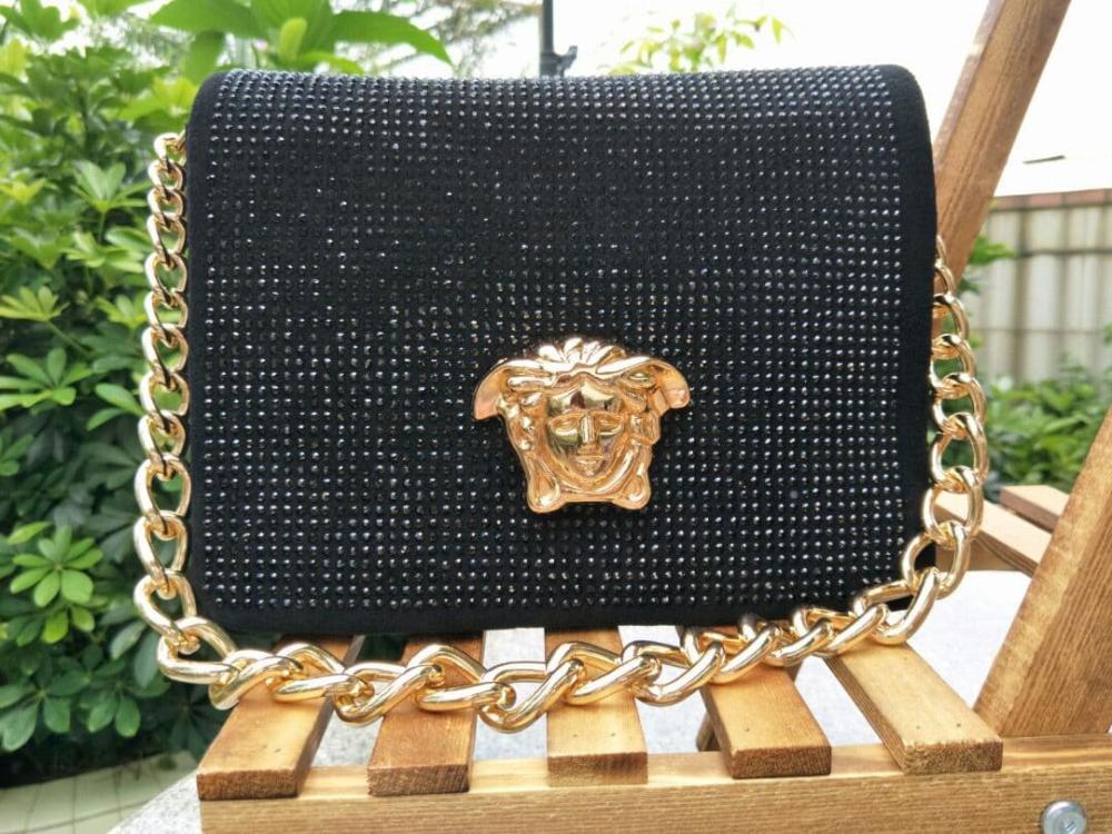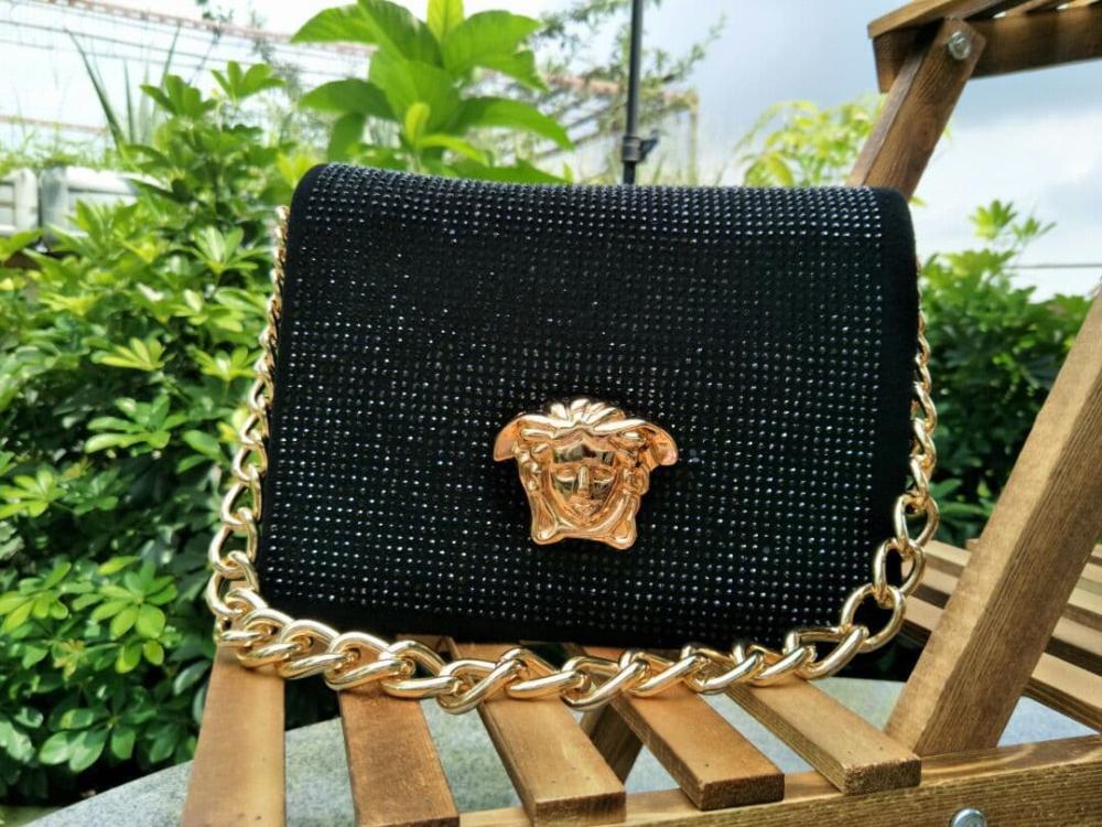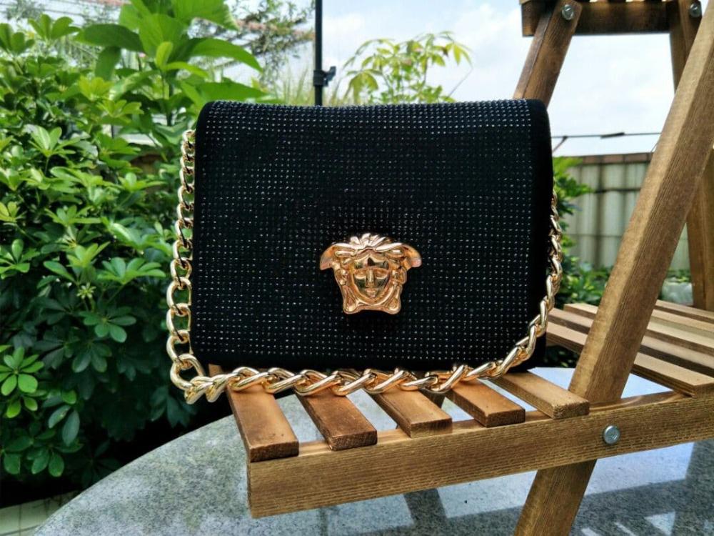 تُعد هذه الحقيبة من فيرزاتشي تجسيدًا للأناقة والفخامة، حيث تتميز بتصميم عصري من الجلد اللامع باللون الأسود، ومزينة بشعار ميدوسا الشهير على الغطاء الأمامي، مما يضفي لمسة فاخرة على إطلالتك.
