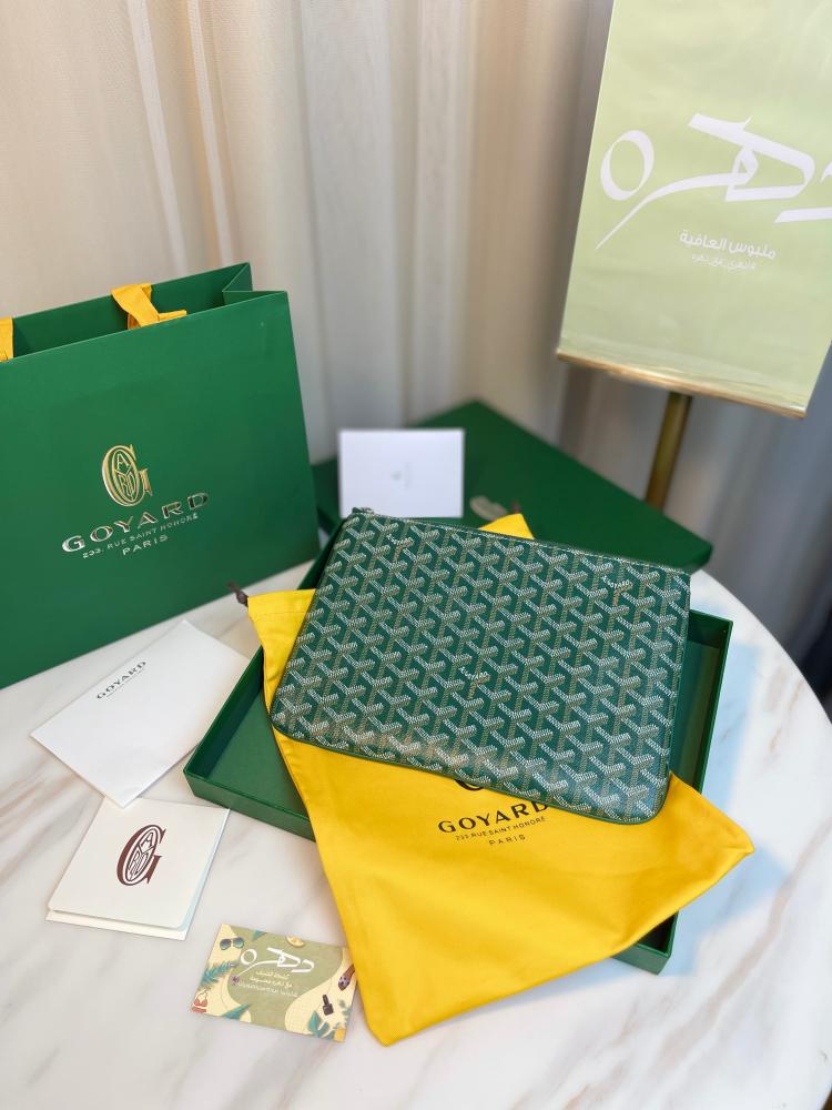 - الخامة: كانفس Goyardine الشهير المقاوم للعوامل الخارجية، مع لمسات فاخرة من جلد العجل.