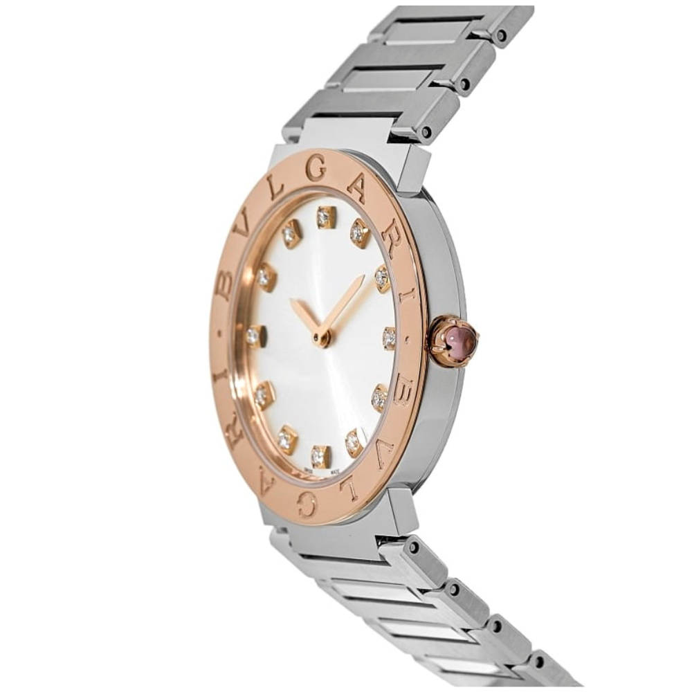 ساعة نسائية فضية من Bvlgari مزينة بحلقة ذهبية