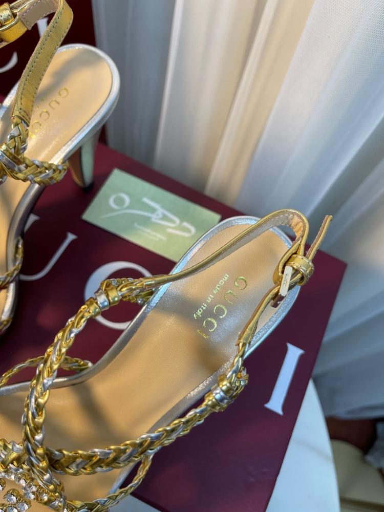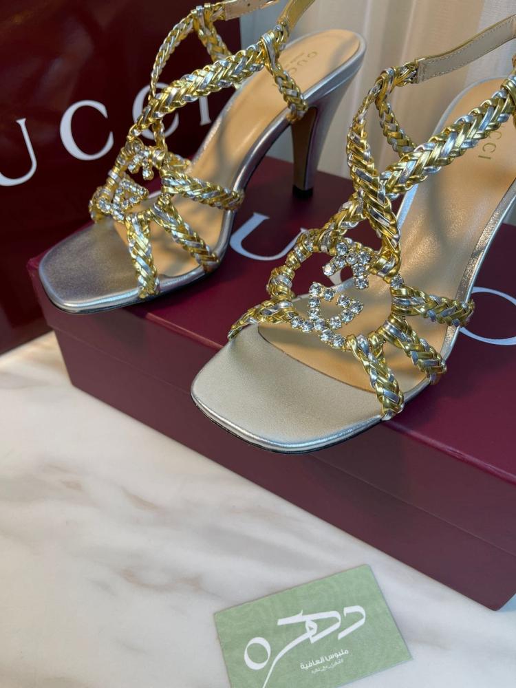 تألقي بتصميم برّاق مع صندل غوتشي المزيّن بحلية شعار GG المتشابك المرصعة بالكريستال، الذي يُضفي لمسة فاخرة على إطلالتك في المناسبات الخاصة.