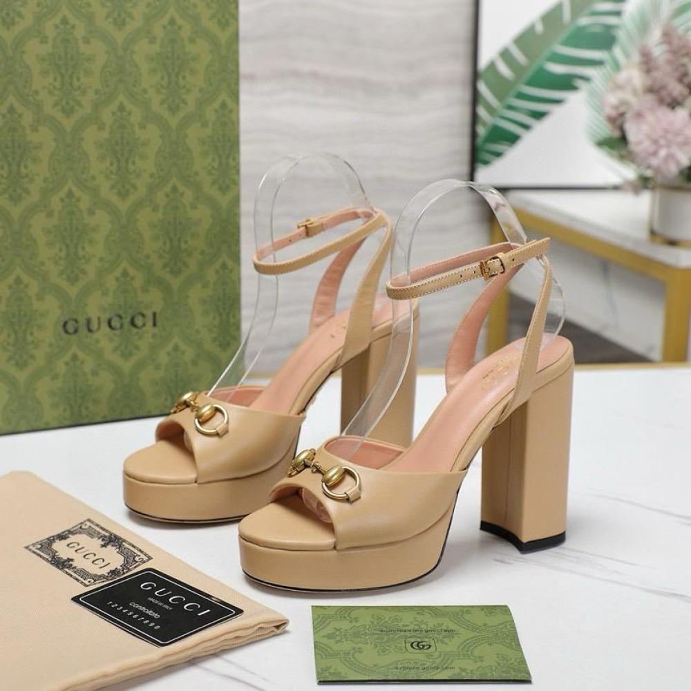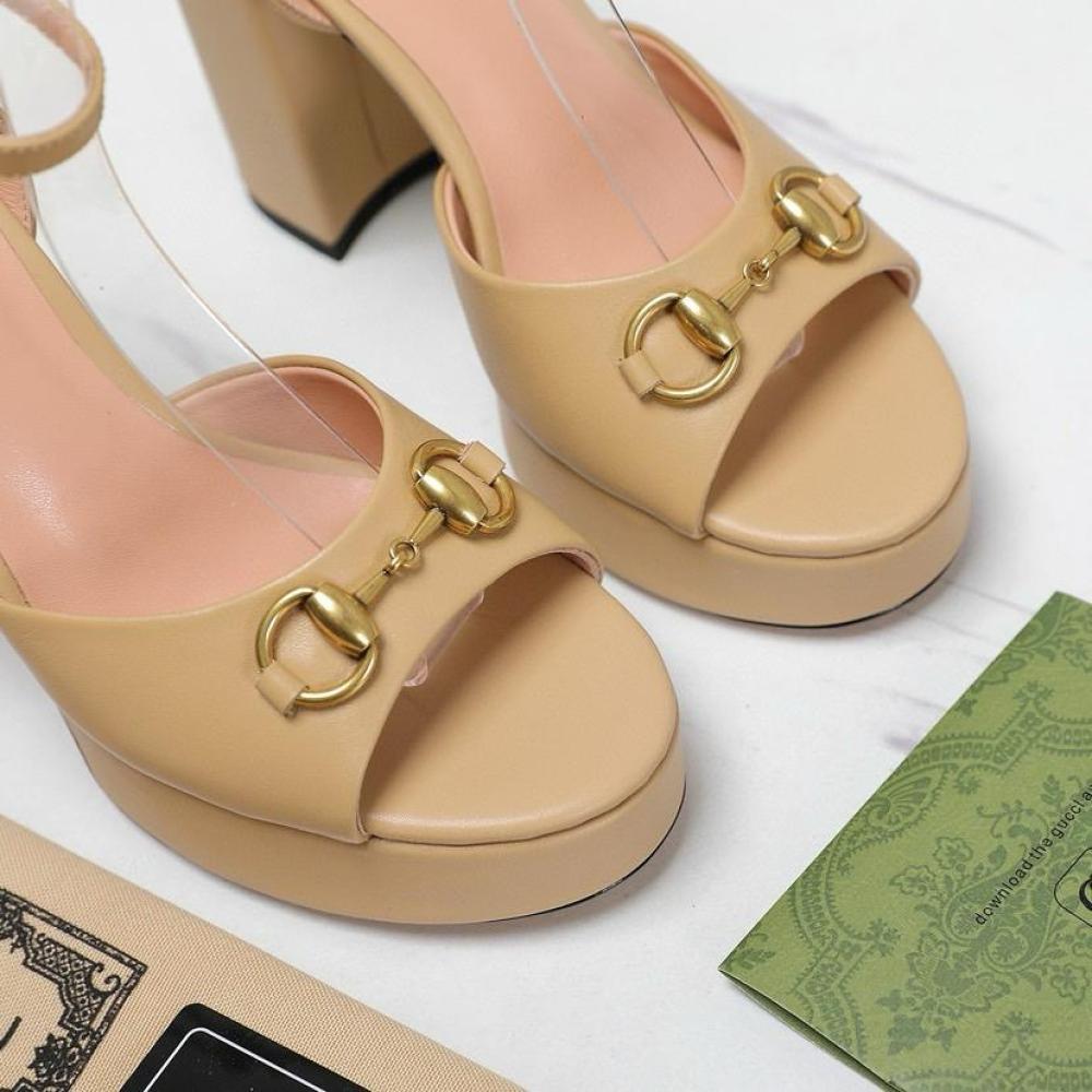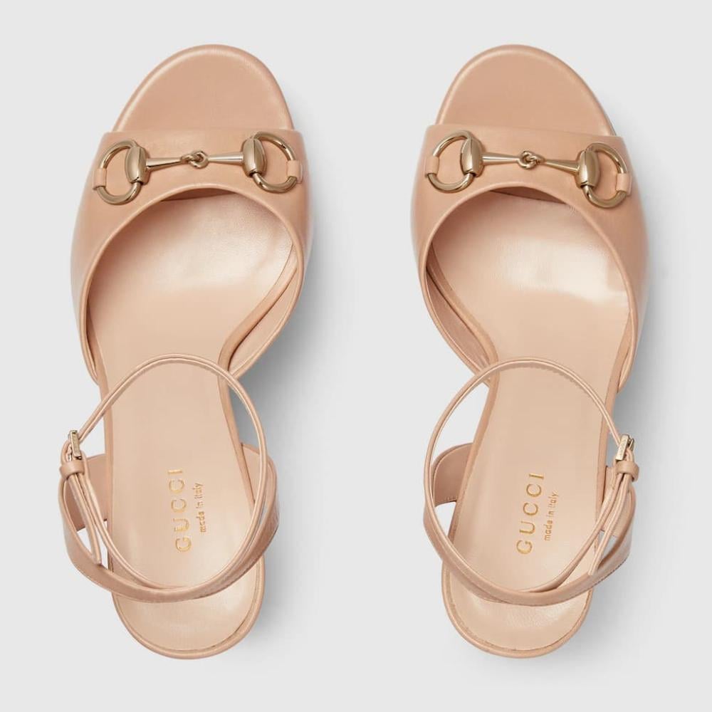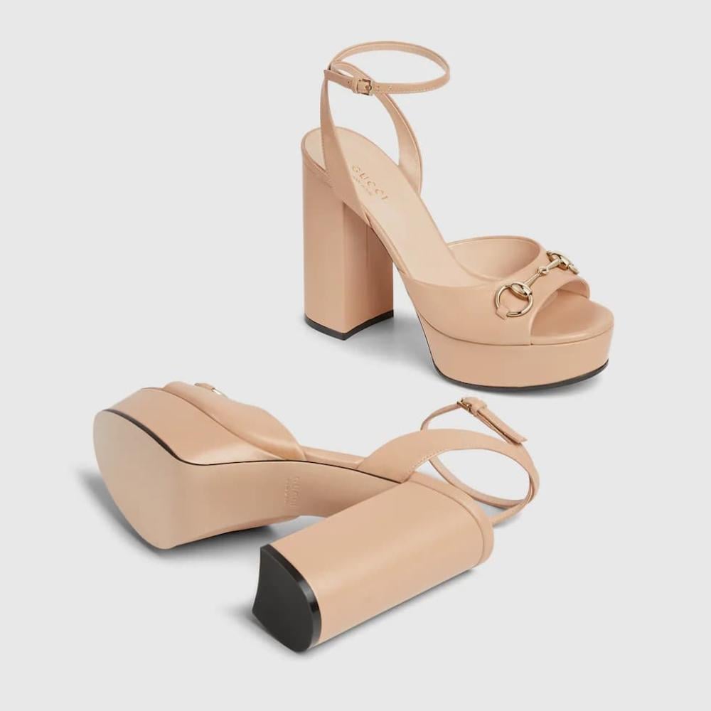 يُقدم غوتشي تصميمًا فاخرًا مع الصندل النسائي بكعب عالي وحلية الحصان، الذي يجمع بين الأناقة الكلاسيكية واللمسات العصرية. يتميز هذا الصندل بكعب مرتفع ومنصة أمامية، مما يضفي توازنًا وراحة أثناء الارتداء. تُزينه حلية الحصان الأيقونية، مع جلد فاخر ولمسات نهائية دقيقة تعكس الحرفية العالية للعلامة.