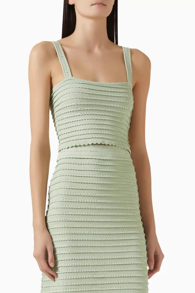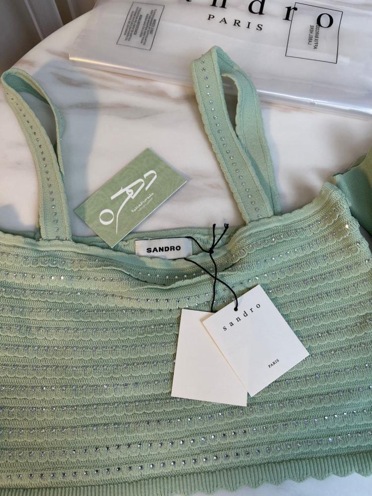 أضيفي لمسة من الفخامة والرقي إلى إطلالتك المسائية مع طقم ساندرو المحبوك بالكريستال​ "Sandro Rhinestone Trim Knit Crop ". بتصميمه الأنيق وتفاصيله الكريستالية المتلألئة، يُعد هذا التوب الخيار المثالي للمرأة العصرية التي تبحث عن التميز والجاذبية في كل مناسبة.​