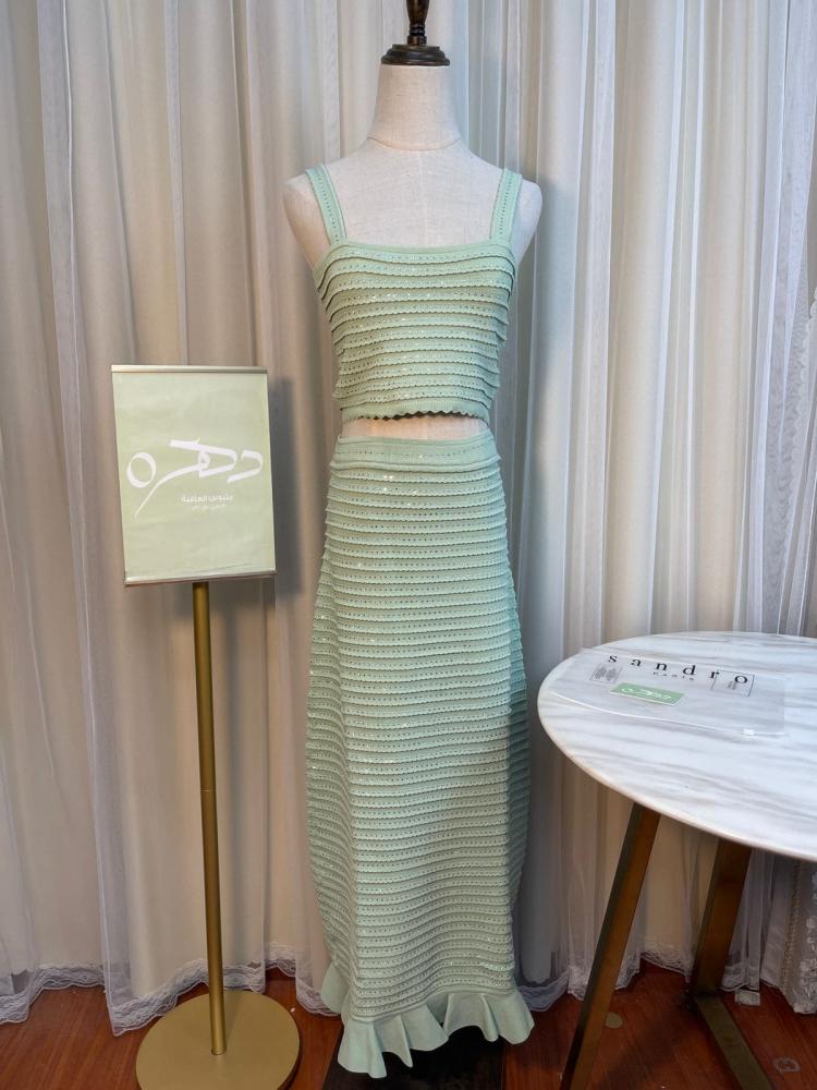 اجعلي طقم ساندرو المحبوك بالكريستال​ إضافة فاخرة إلى خزانة ملابسك. بتصميمه الراقي وتفاصيله المتقنة، سيمنحك إطلالة لا تُنسى في كل مناسبة. اقتنيه الآن وتمتعي بأناقة لا مثيل لها.