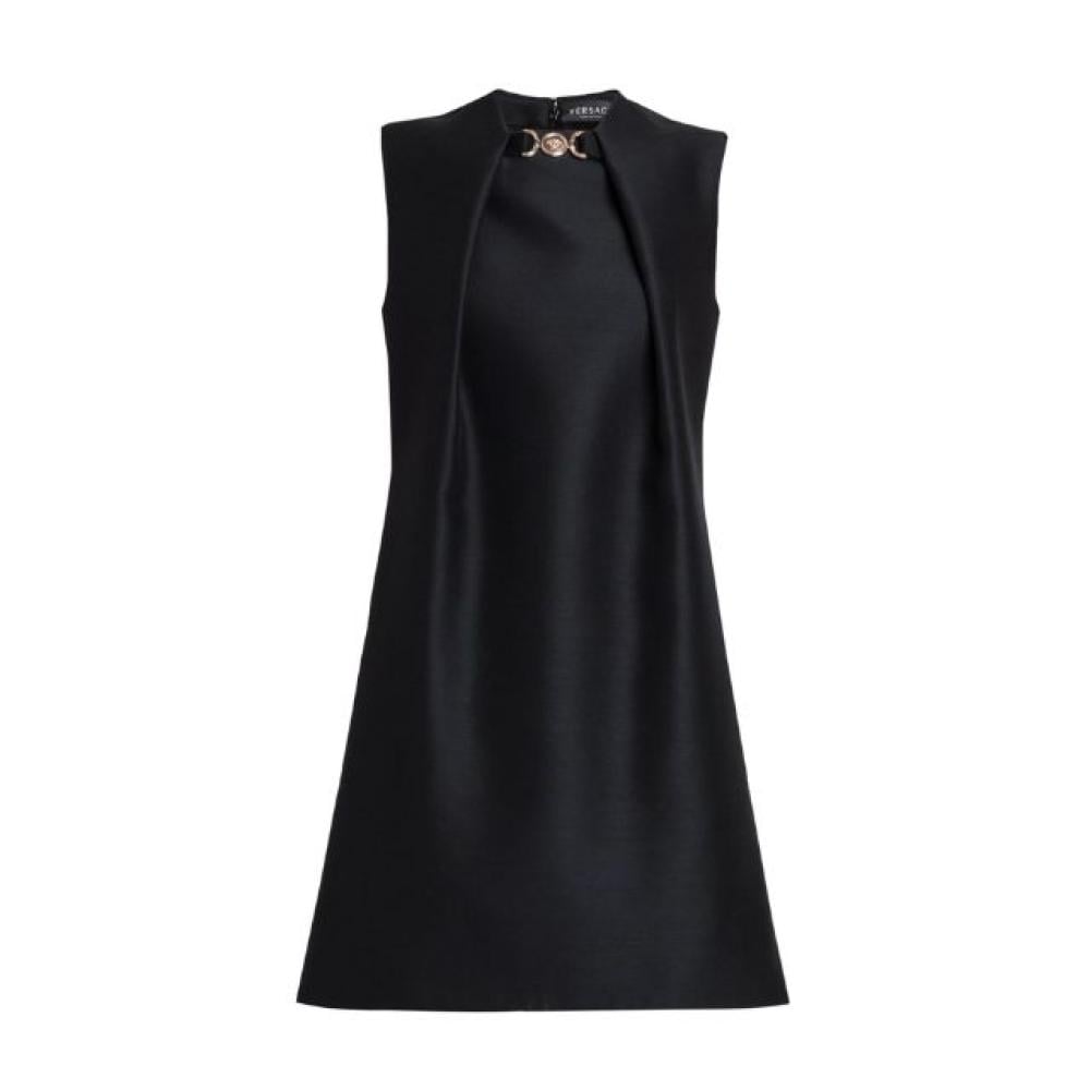 إذا كنتِ تبحثين عن قطعة تُبرز حضوركِ دون أن تتكلمي، فستان فيرزاتشي القصير بشعار ميدوسا هو خياركِ الأمثل. تصميمه الأسود الجريء وتفاصيله المعدنية الفاخرة يجعلان منه أكثر من مجرد فستان, إنه إعلان عن شخصية لا تقبل التكرار. ارتديه، ودعي الأناقة تتحدث عنكِ. استوحت دار فيرزاتشي هذا الفستان من جوهرها الجريء، فصممته بمزيج فاخر من الصوف والحرير ليمنحكِ إحساسًا بالراحة والترف في آنٍ واحد.