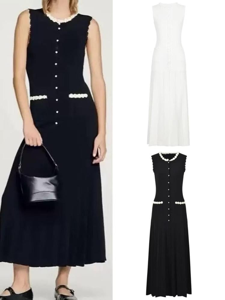 - الماركة والموديل: ساندرو – Blossom Crochet-Trim Stretch-Knit Maxi Dress
