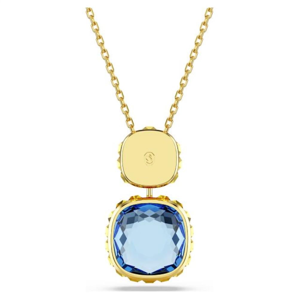 تأتي هذه القلادة من مجموعة Chroma Twist بتصميم مطلي بالذهب يتصل بالسلسلة عبر كريستالة خضراء بينما يتيح لكِ الجزء السفلي القابل للعكس اختيار كريستالة باللون الأزرق أو الوردي حسب مزاجكِ.