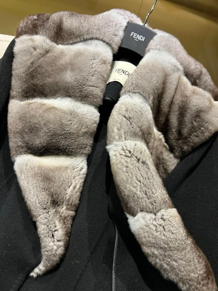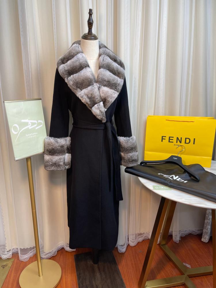 كوت فندي كاشمير بياقة وأكمام من فرو مينك