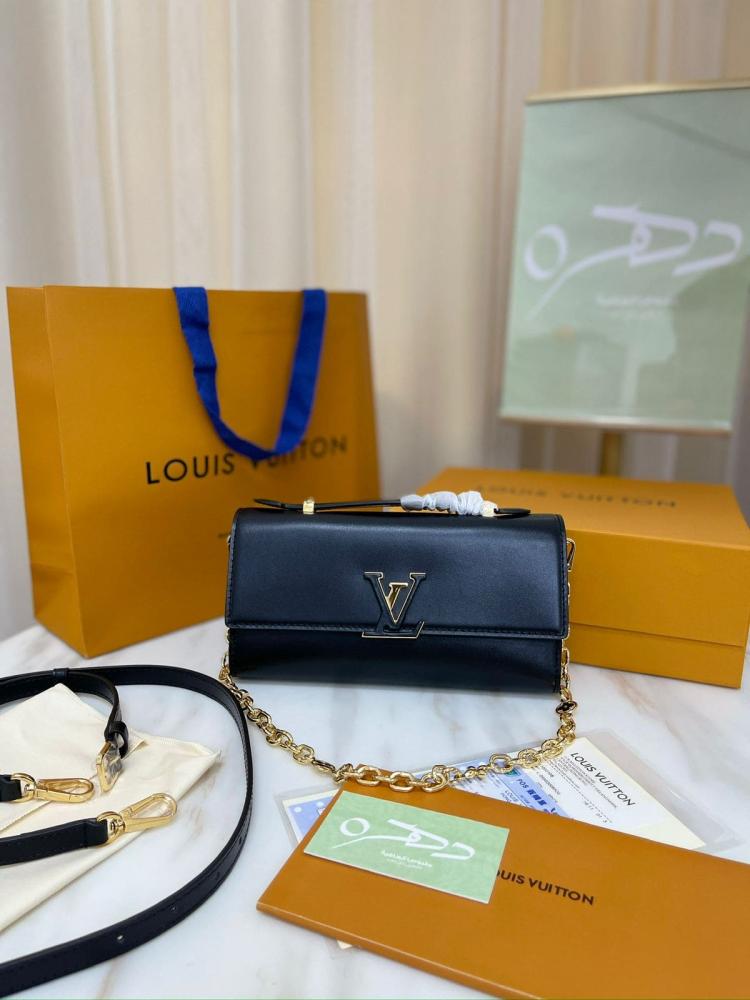 اجعلي محفظة لويس فيتون Wallet on Chain Capucines رفيقتك المثالية لإطلالة راقية ومتميزة في كل مناسبة.