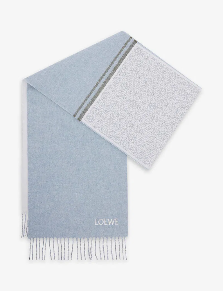 احصلي على وشاح لويڤي أناغرام بشراشيب لمسة فاخرة من الدفء والأناقة الآن، وأضيفي لمسة من الأناقة العصرية إلى خزانة ملابسك الشتوية!